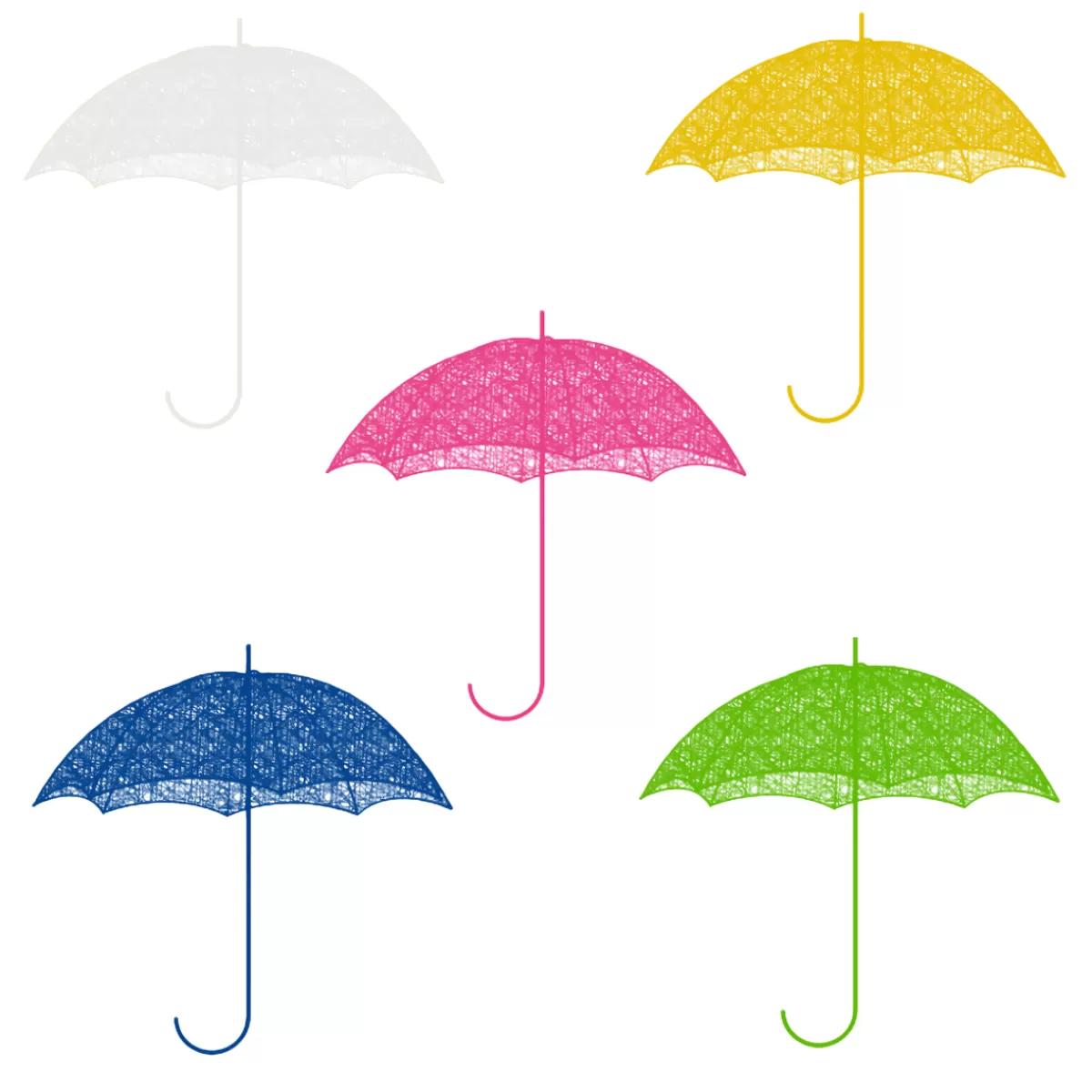 Notre parasol en fibre tressée 3D de 75 cm est disponible en 5 couleurs – blanc, jaune, bleu, vert et rose – et avec son mât en métal, vous avez la décoration d’extérieur parfaite !