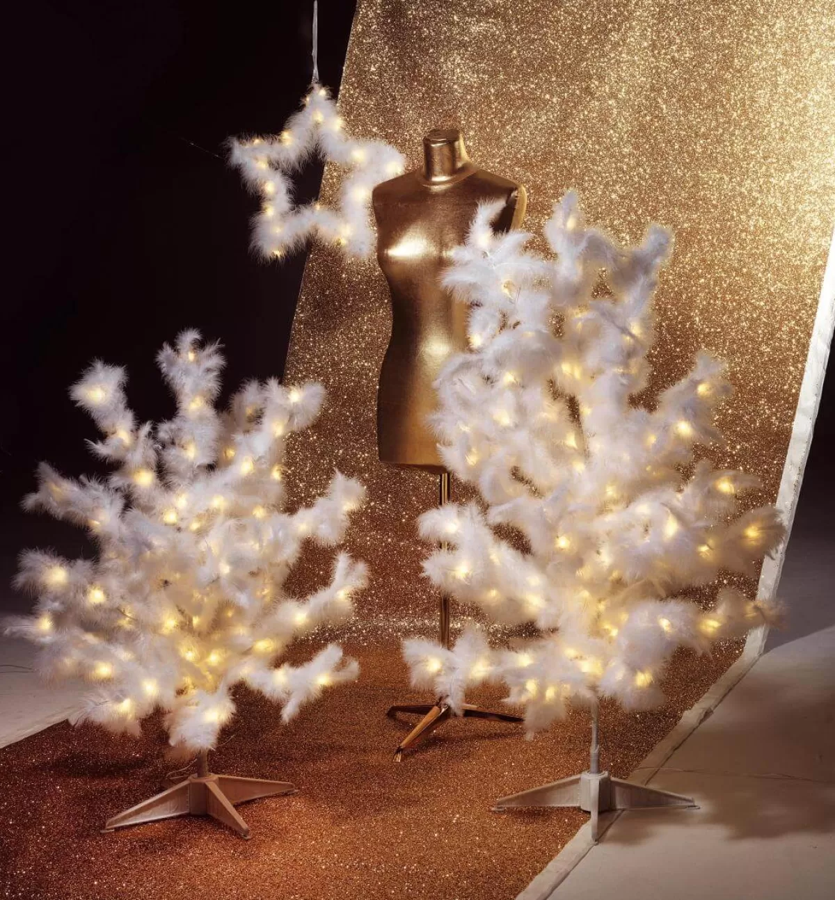 Idée déco élégante et originale pour la saison de Noël – arbre déco pliable avec de vraies plumes et des LED blan…