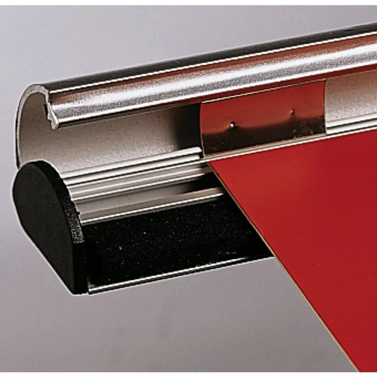 2 barres rabattables avec interrupteur à poussoir, oeillets coulissants pour accrocher et embouter facilement, profilé en aluminium 25 mm avec une bande de caoutchouc pour un ajustement parfait, adapté pour ép. de bandeau 3 mm = 500-600 gr/m², prix/lot de 2