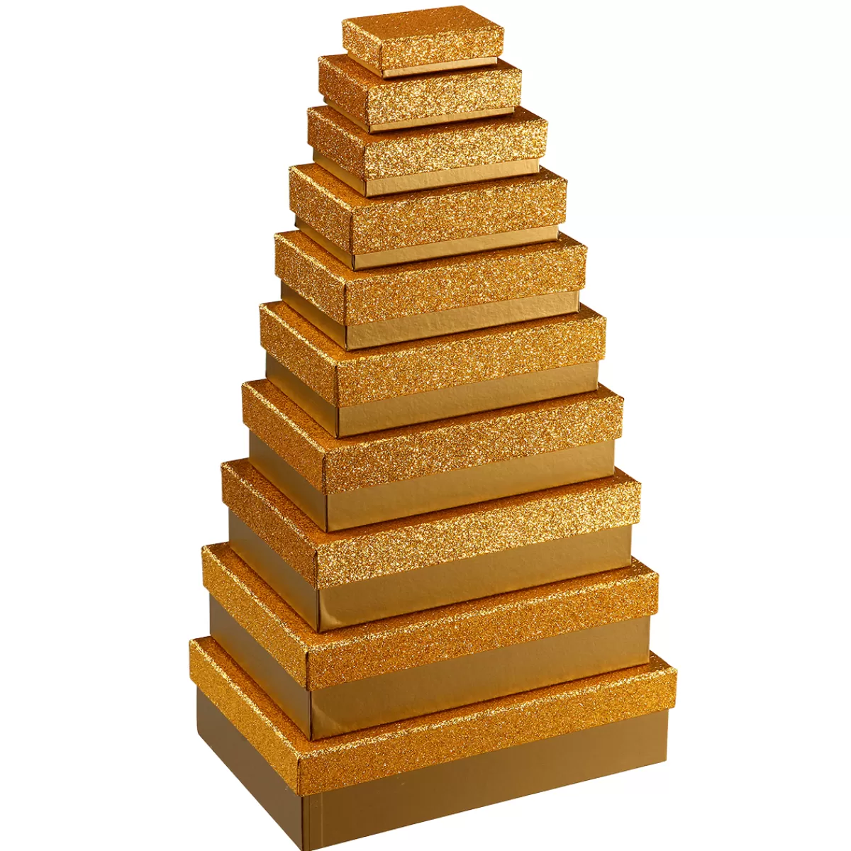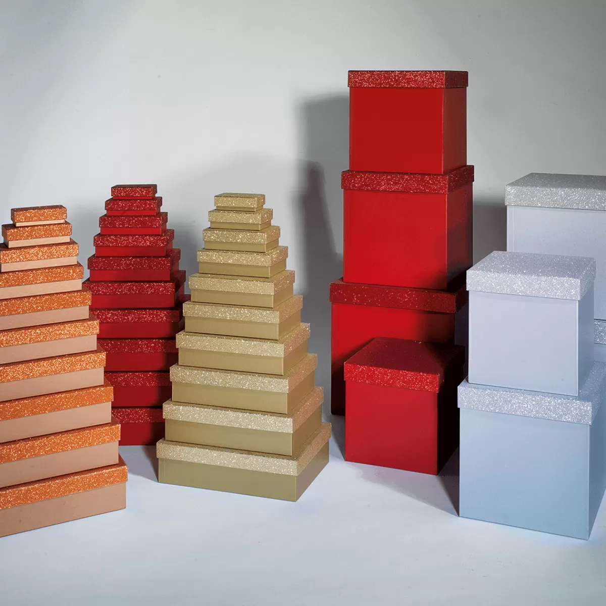 10 boîtes polyvalentes avec couvercle en paillettes assorti, alternatives au papier d’emballage ou aux sacs-cadeaux. Les coffrets cadeaux à la présentation raffinée constituent une solution élégante et décorative pour les cadeaux difficiles à emballer, fragiles ou nécessitant un emballage spécial en raison de leur caractère exclusif. Ils sont parfaits pour emballer les cadeaux pour Noël, de jubilé ou d’anniversaire, ou simplement pour le rangement et la décoration. Fabriqué en carton indéformable avec couvercle à paillettes, empilable et emboîtable. Prix/lot de 10.