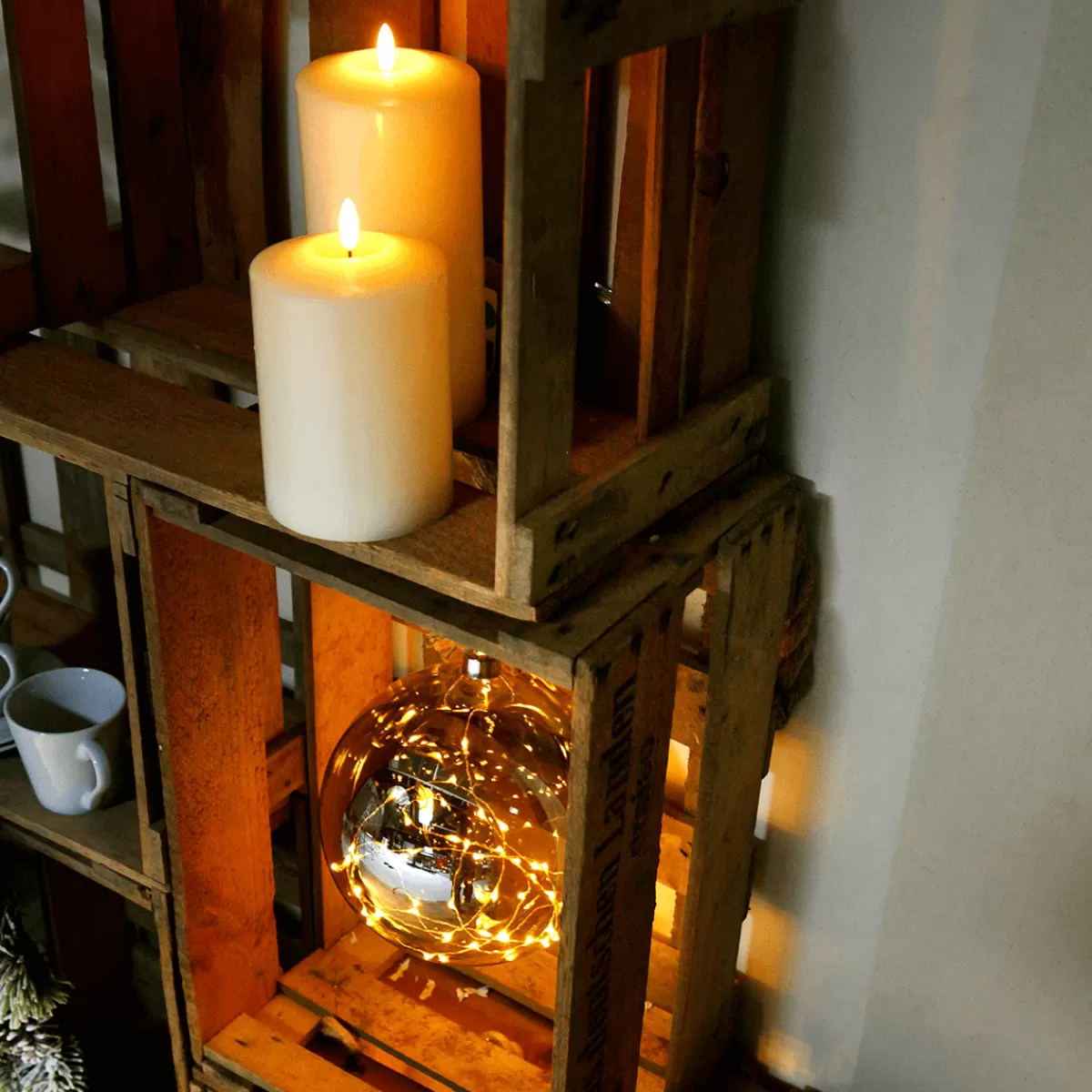 Léger scintillement, aspect typique et odeur de bougies en cire – sans aucun risque d’incendie ! La bougie LED en cire…