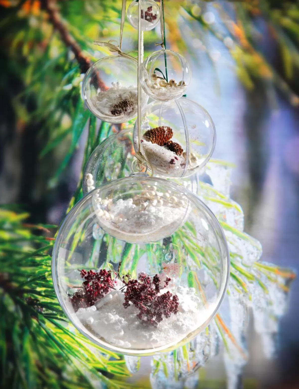 La grande polyvalence de ces boules en plastique transparente en fait de parfaits accessoires dans la décoration de vitrines ou d’espaces tout au long de l’année. Composées de deux parties à assembler, elles peuvent être remplies de divers objets déco ou ornées d’autocollants ou encore servir à décorer des sapins grâce à l’oeillet de suspension. Prix/paquet de 10