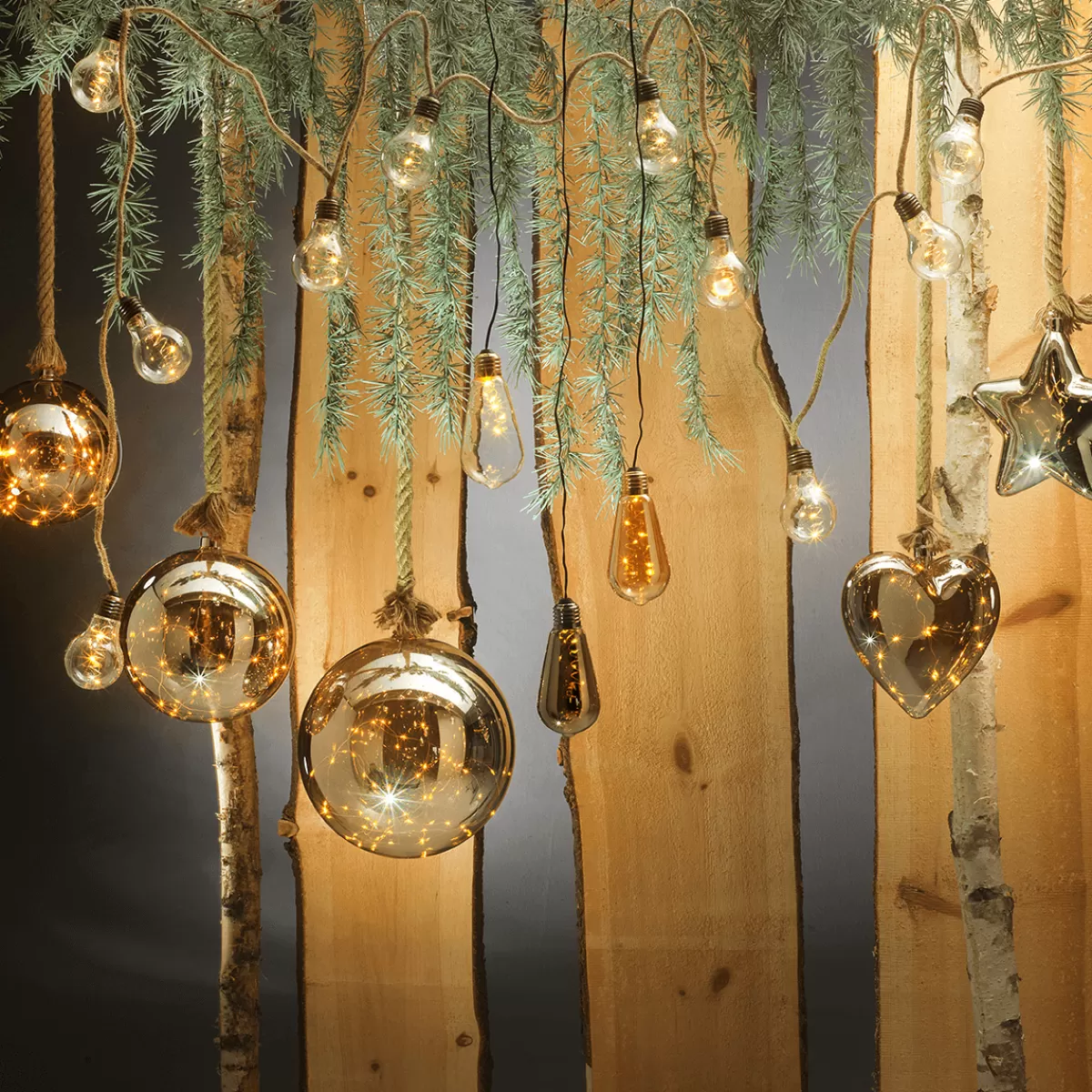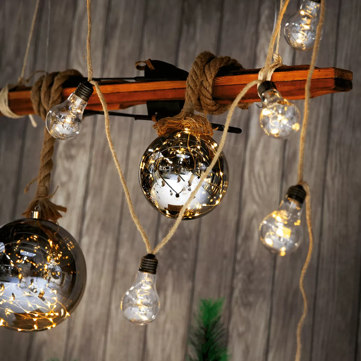 Lampe décorative en verre fumé avec suspension en corde de sisal de long. 80 cm. En vue d’une déco festive aux effets romantiques, la boule de verre est éclairée de l’intérieur par une guirlande lumineuse câble à micro-LED chaudes / blanches. Fonctionnement sur pile : 3 x AA (non incluses) avec minuterie de 6 heures. Lumière fixe pour l’int.