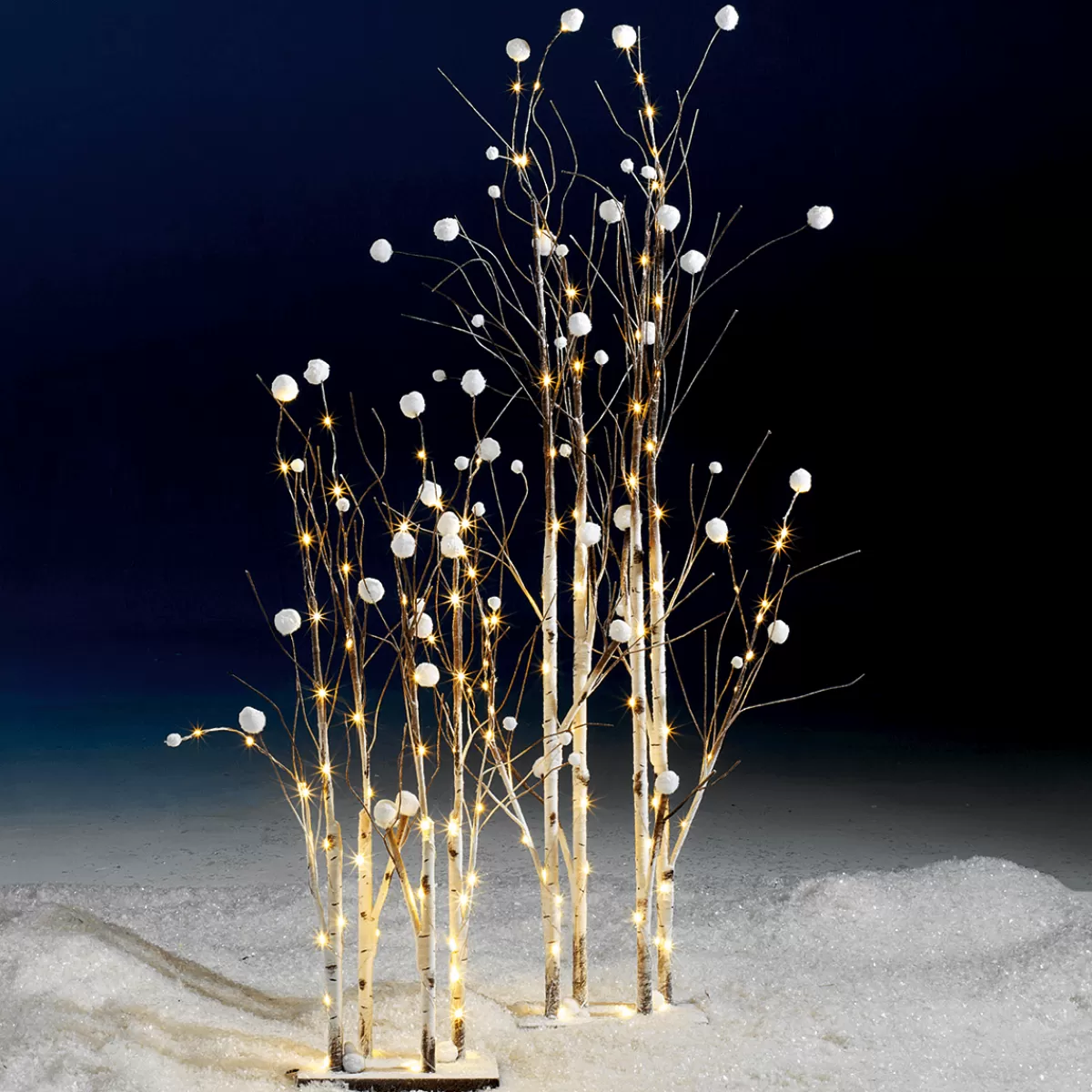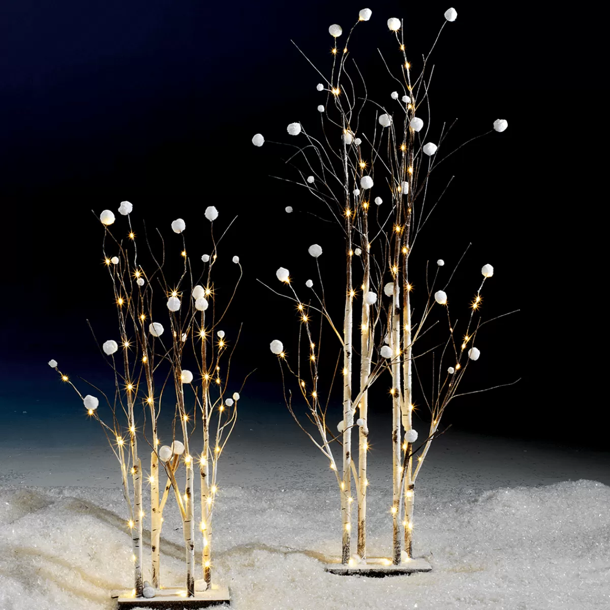 Accents de lumière magiques pour votre vitrine ! branches artificielles aspect bouleau, fin fil de fer argent et boules de neige tendres – c’est ainsi que ces branches lumineuses sur leur plaque de support pratique (25 x 13 cm) ajoutent du confort à toutes les pièces. Les micro LED longue durée à économie d’énergie, sans génération de chaleur, et la basse tension permettent également une durée d’éclairage plus longue. Bloc d’alimentation avec fiche profilée, classe de protection IP44 pour une utilisation occasionnelle en ext. protégé, GS.