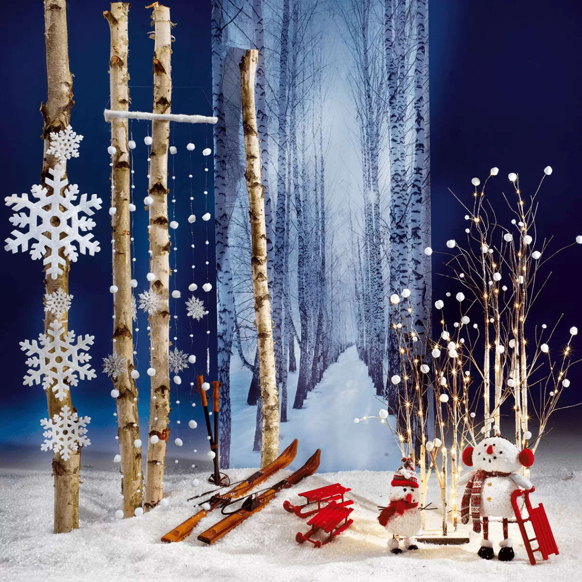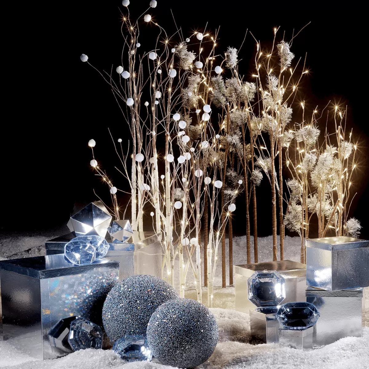 Accents de lumière magiques pour votre vitrine ! branches artificielles aspect bouleau, fin fil de fer argent et boule…