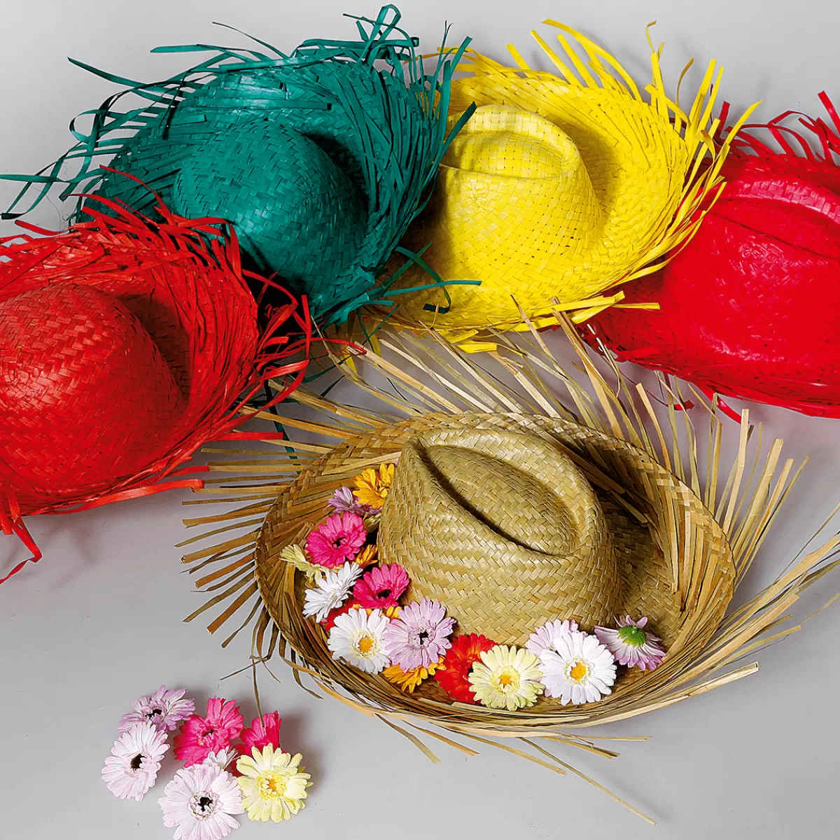 Ce chapeau avec longue frange de paille sur le bord est un super accessoire pour une fête hawaïenne, fête de plage, fête d’été, fête costumée ou un carnaval. Ø int. 18,5 cm. Prix/pce.