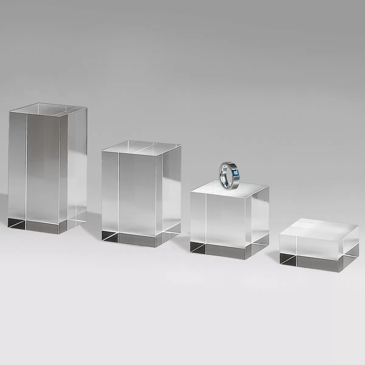 les colonnes en verre acrylique transparent et plein offrent une présentation noble et sont idéales pour les bijoux, objets déco ou petites sculptures, surface de base 5 x 5 cm, prix/pce