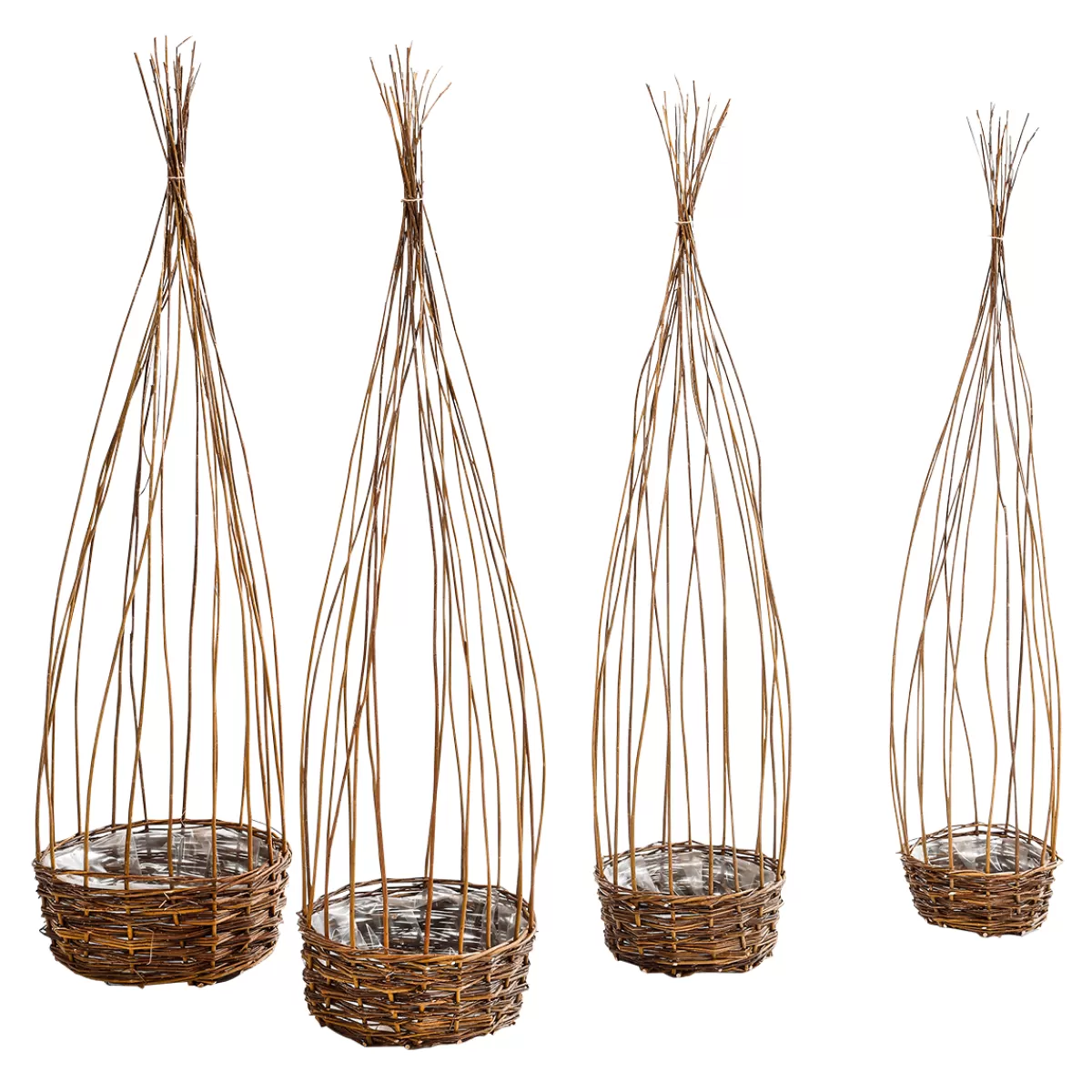 Pliable et pourtant robuste – un panier en osier de 4 pièces au look rustique et charmant. Les aides à l’escalade de couleur brune naturelle attirent merveilleusement l’attention sur les terrasses, dans les cours, les atriums ou devant l’entrée. Avec des plantes grimpantes telles que les roses ou le lierre, vous pouvez mettre de beaux accents à l’intérieur comme à l’extérieur.
