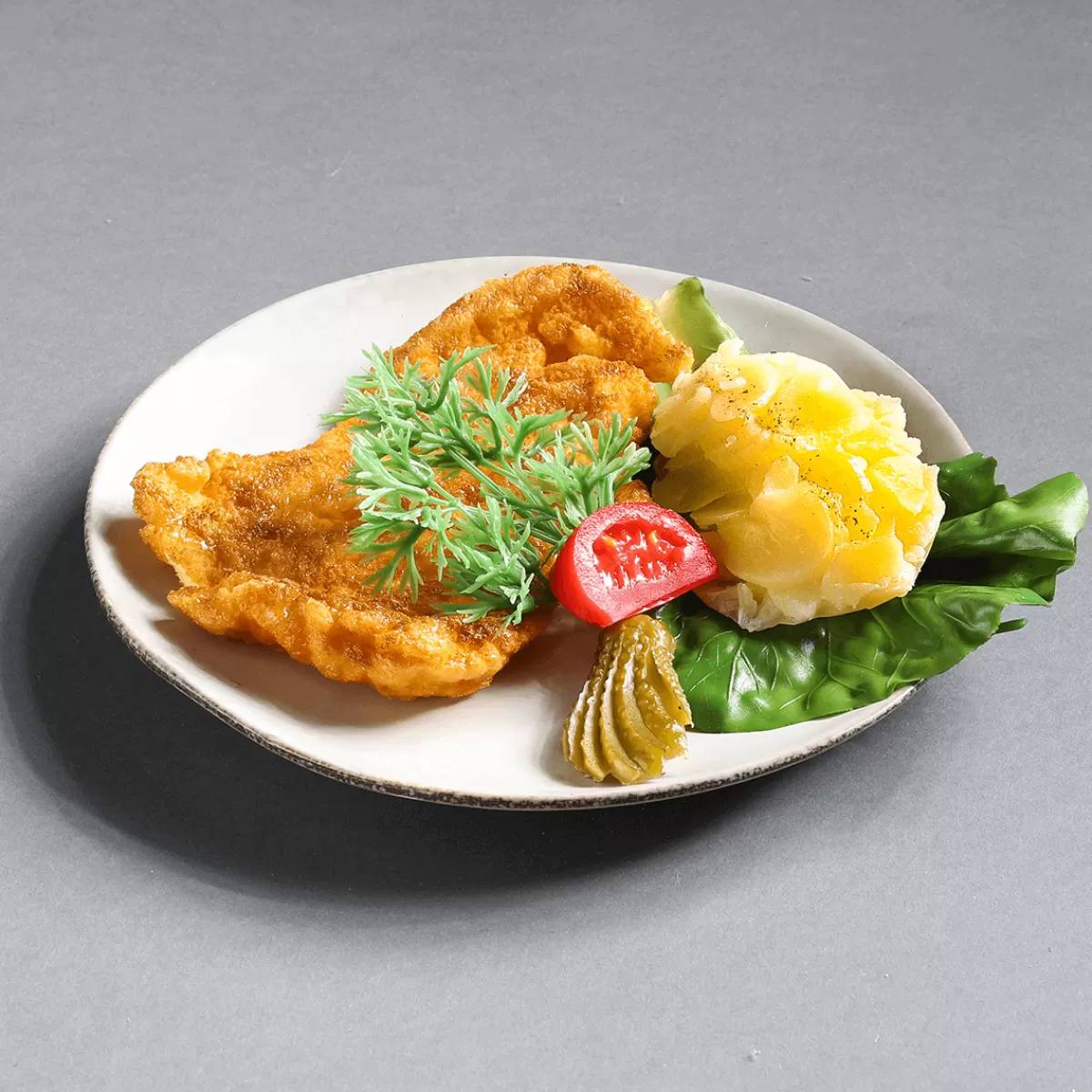 Escalope panée en plastique de haute qualité et travaillée avec un grand souci du détail.