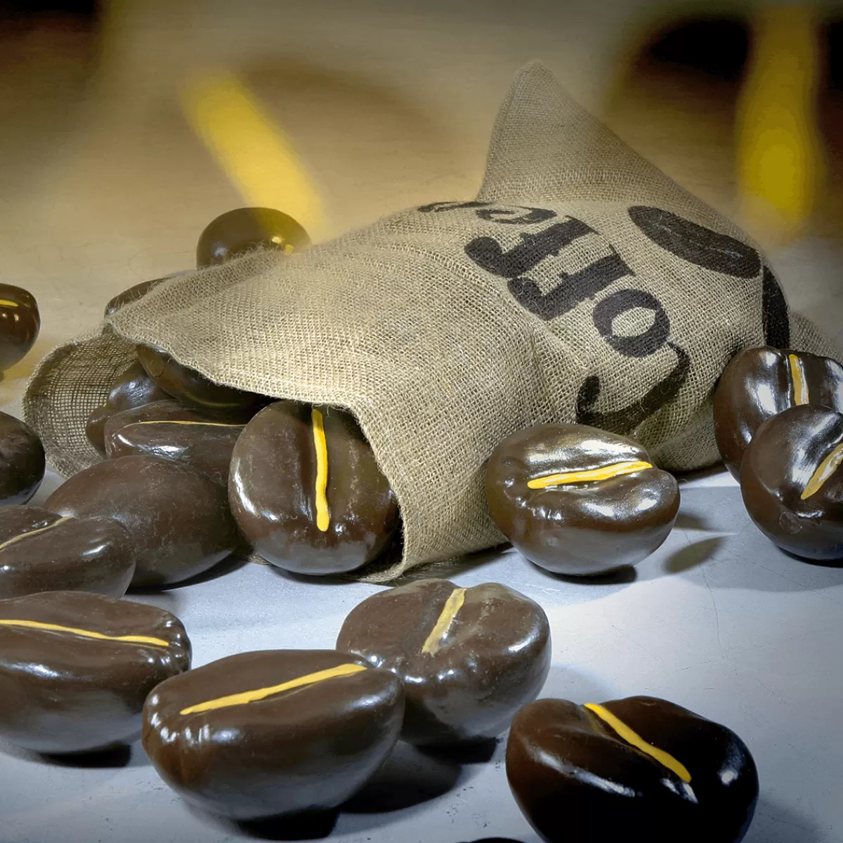 Nos grains de café XXL en mousse dure sont polyvalents, comme alternative aux aliments périssables dans la conception de vitrines ou pour la décoration de magasins spécialisés. Prix/paquet de 6.