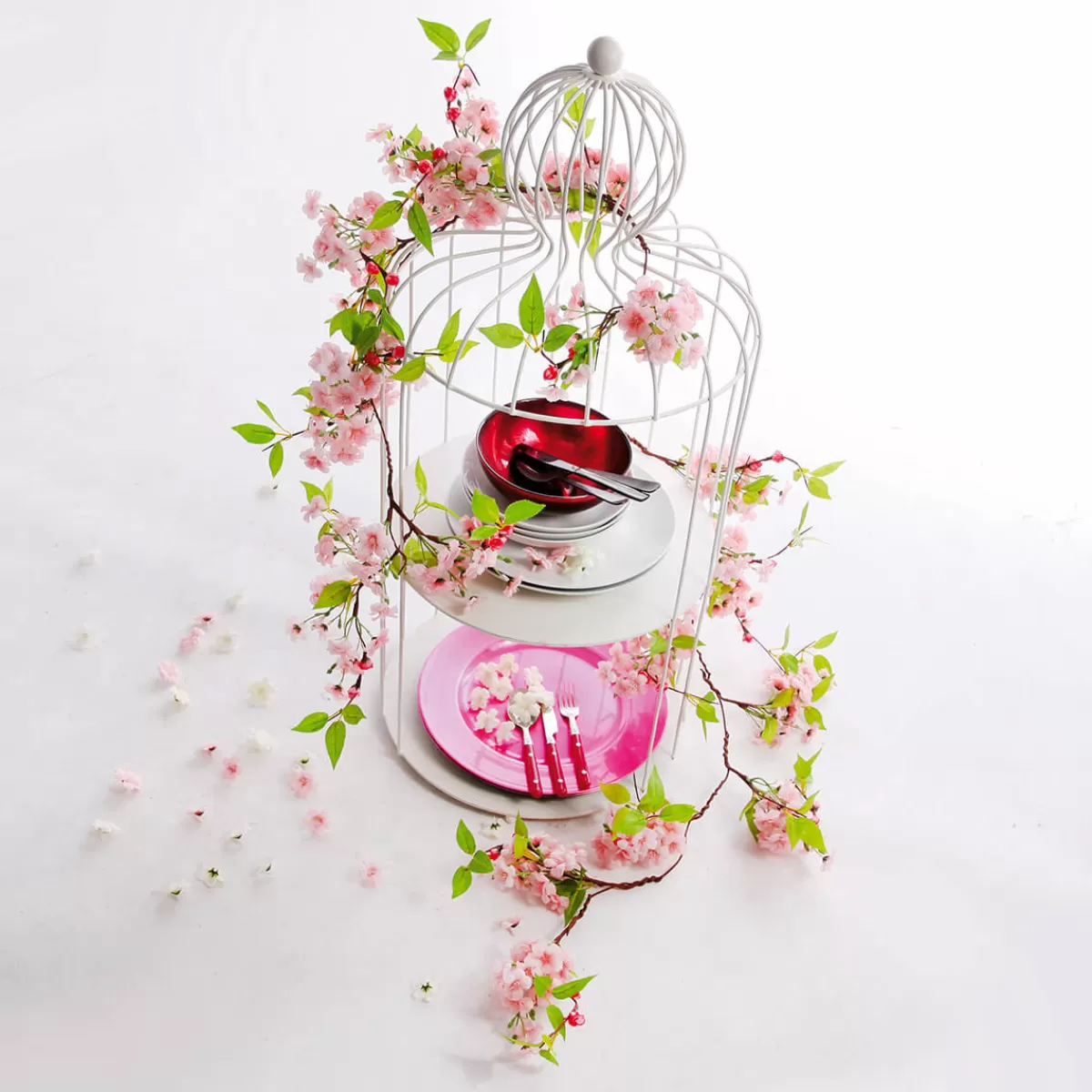 Guirlande de fleurs avec un grand nombre de fleurs délicates et de feuilles d’un vert frais pour des décorations printanières élégantes. La guirlande de fleurs artificielles ramifiée est pliable et peut être utilisée suspendue, se balançant ou comme décoration de table. Design de haute qualité en textile et plastique. Prix/pce.