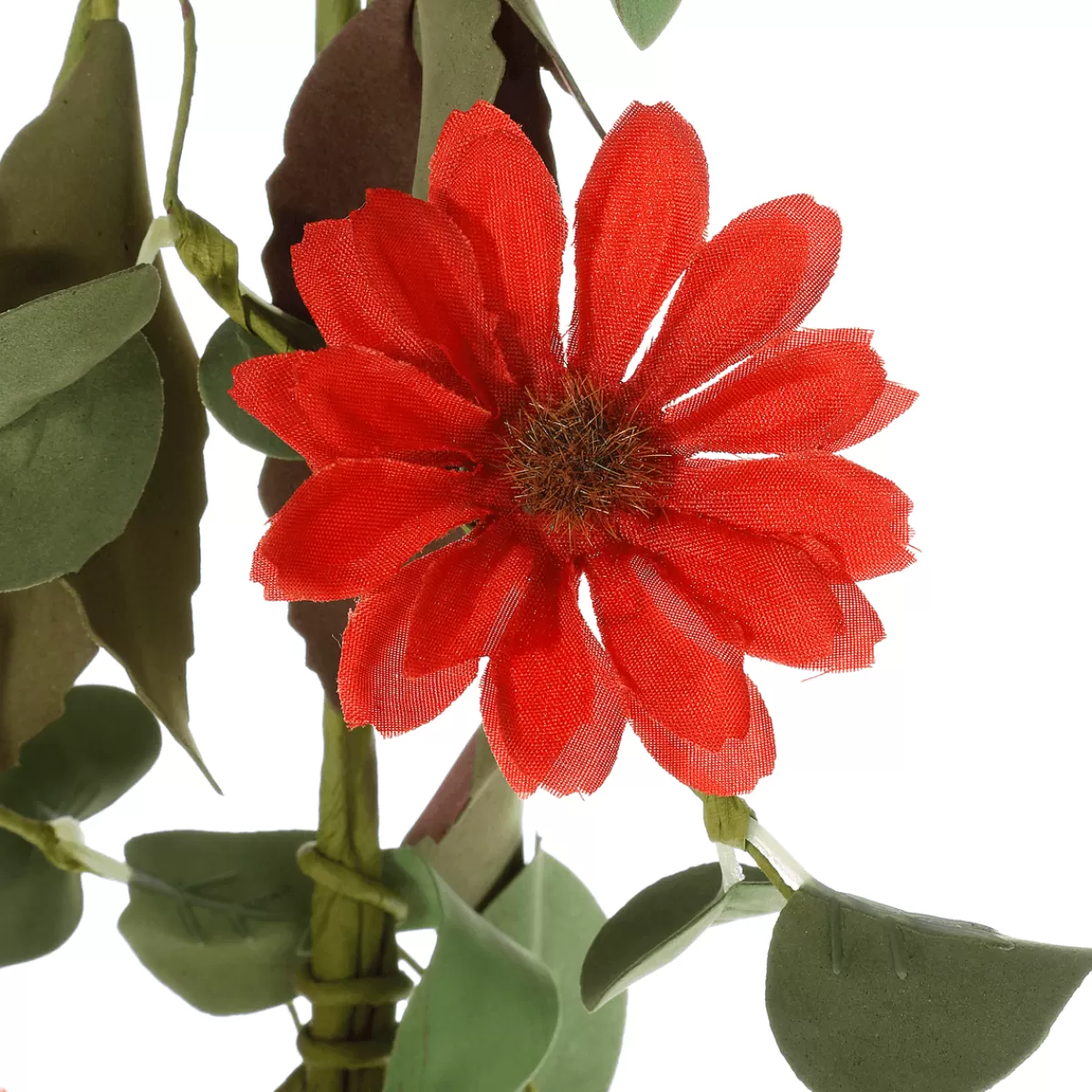 Guirlande de gerberas artificiels joliment travaillée, avec des fleurs décoratives rouges, jaunes et orange de diffé…