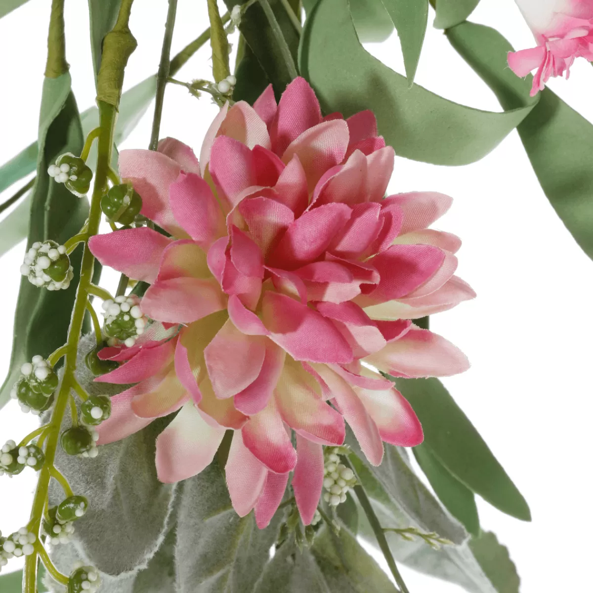 Guirlande de dahlias artificiels joliment travaillée, avec des fleurs décoratives roses de différentes tailles avec …
