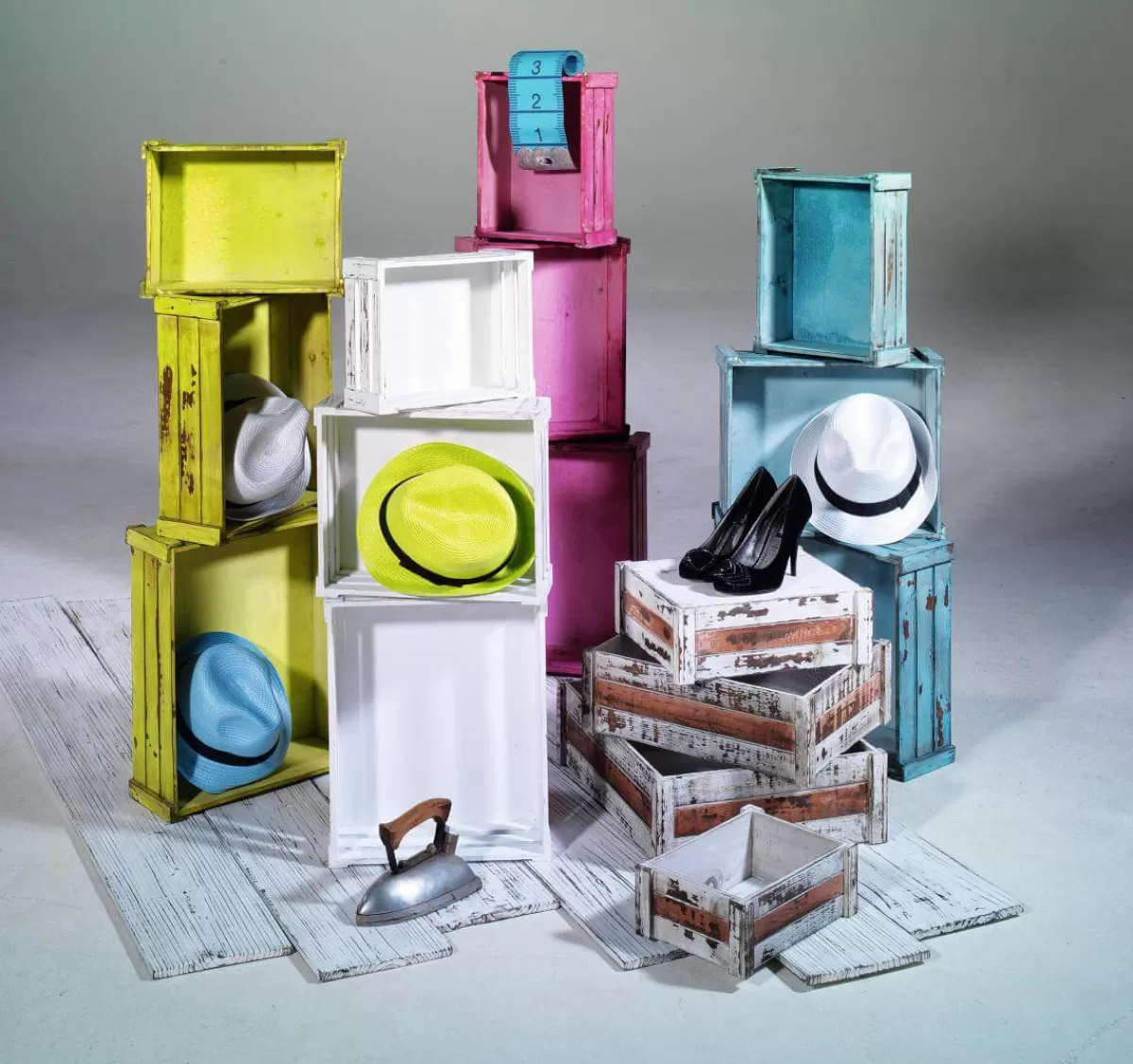 Boîtes en bois colorées décoratives avec un style shabby chic et irrégulier. Les caisses déco sont parfaites pour …