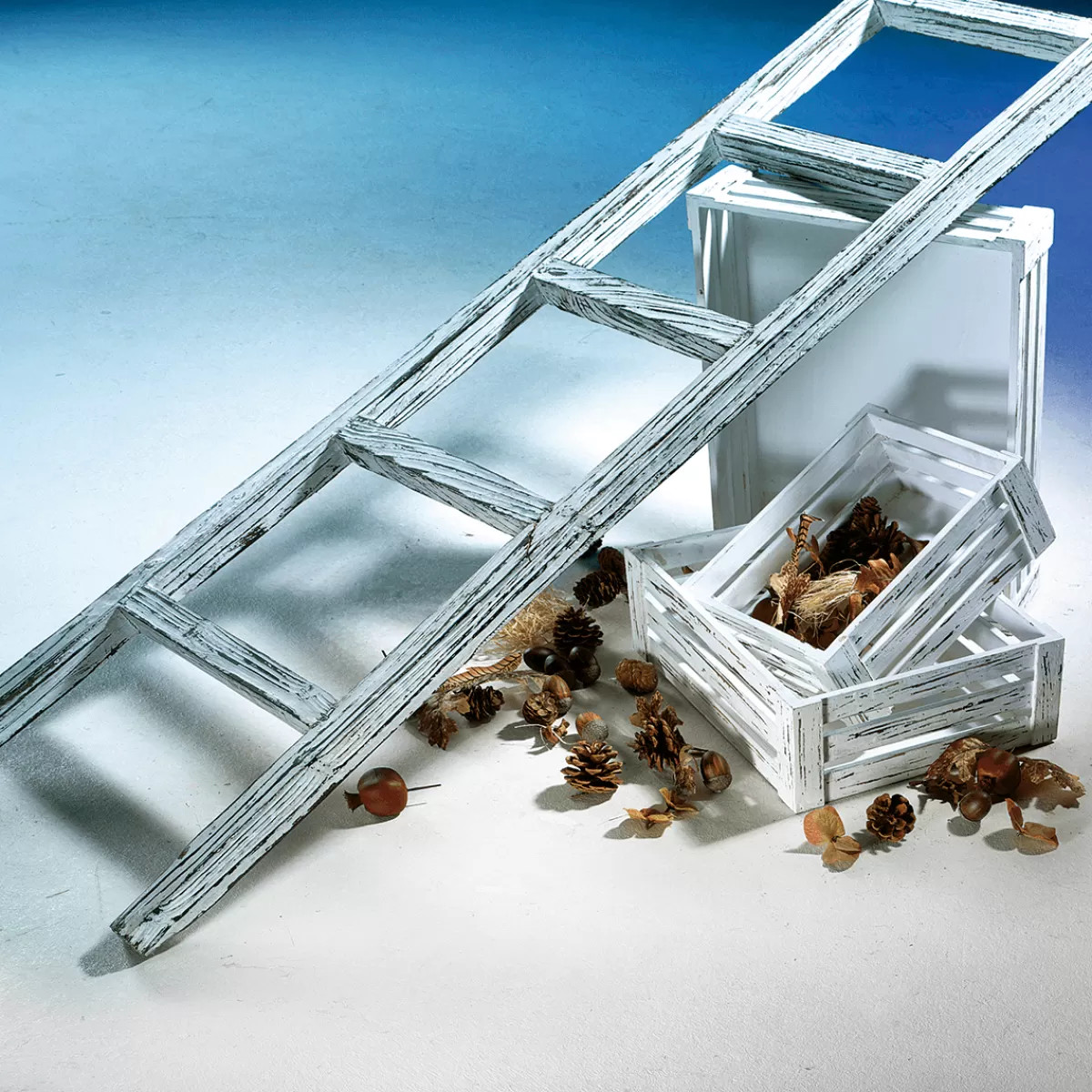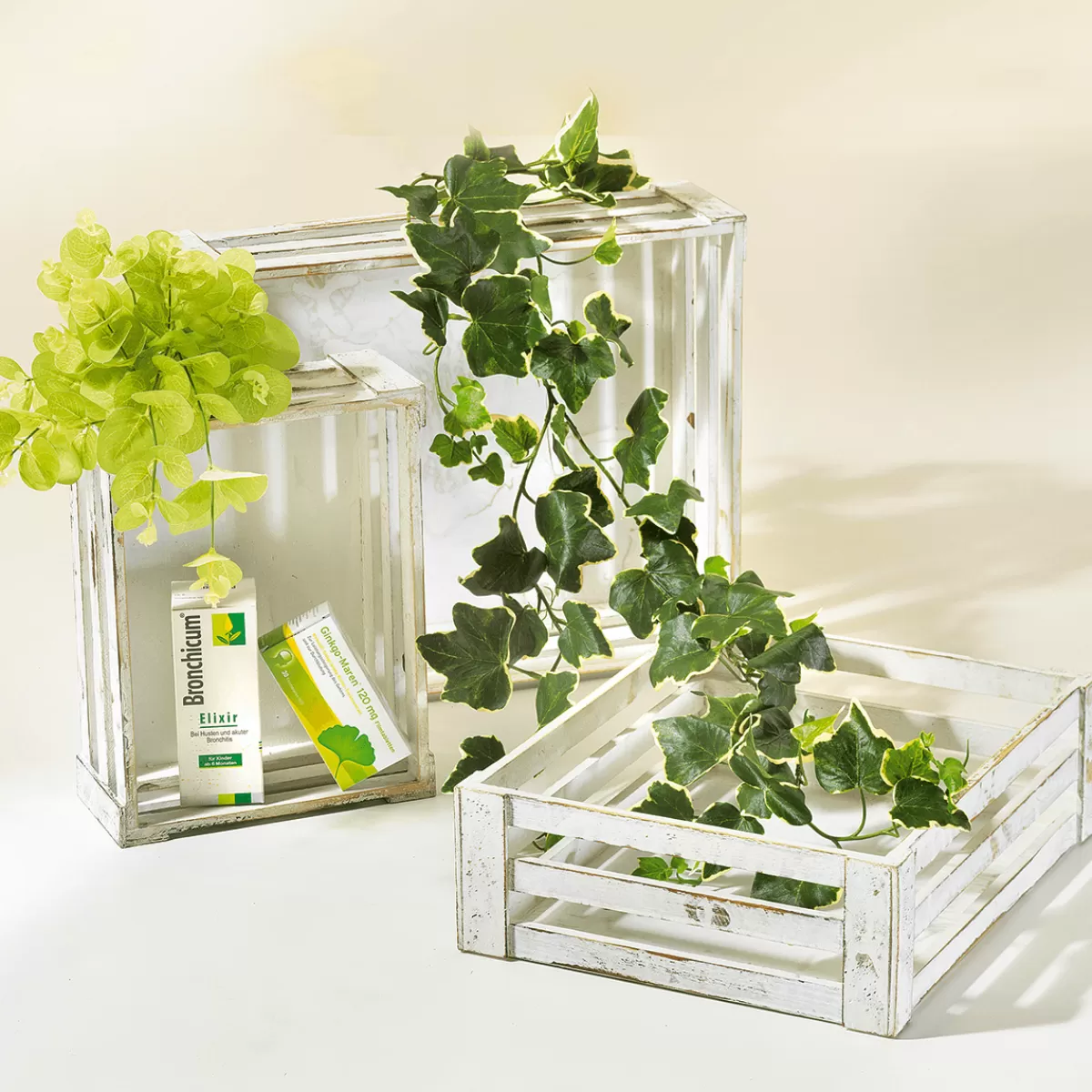 Caisses en bois décoratives avec vernis délibérément irrégulier dans le style shabby chic. Les caisses déco sont idéales pour les élégantes décorations de bouteilles, de livres et d’accessoires. Avec un peu de savoir-faire, les caisses en bois peuvent être utilisées comme une étagères murales. Dimensions : 40 x 33 x 12, 34 x 28 x 11 und 28 x 22 x 10 cm (B x l x P), prix/lot de 3 .