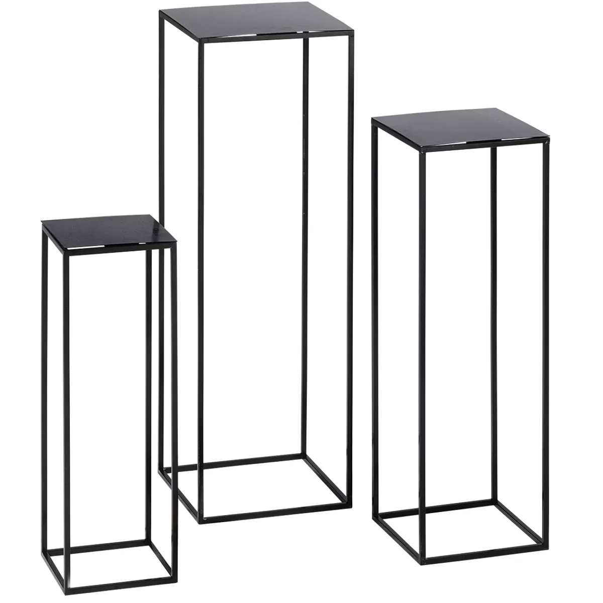 Ce lot de tables design moderne repose sur les contrastes de forme et de matière. Le traitement d’une épaisseur minimale de 10 mm du cadre carré permet une pureté formelle et assure une grande stabilité. Le revêtement en poudre de haute qualité produit un aspect mat, empêche la rouille et la corrosion et donne à la structure durabilité et résistance. Incl. 3 plaques échangeables.Peu encombrant. L’ensemble de tables d’appoint est livré complet, aucun montage requis. Prix/lot de 3.