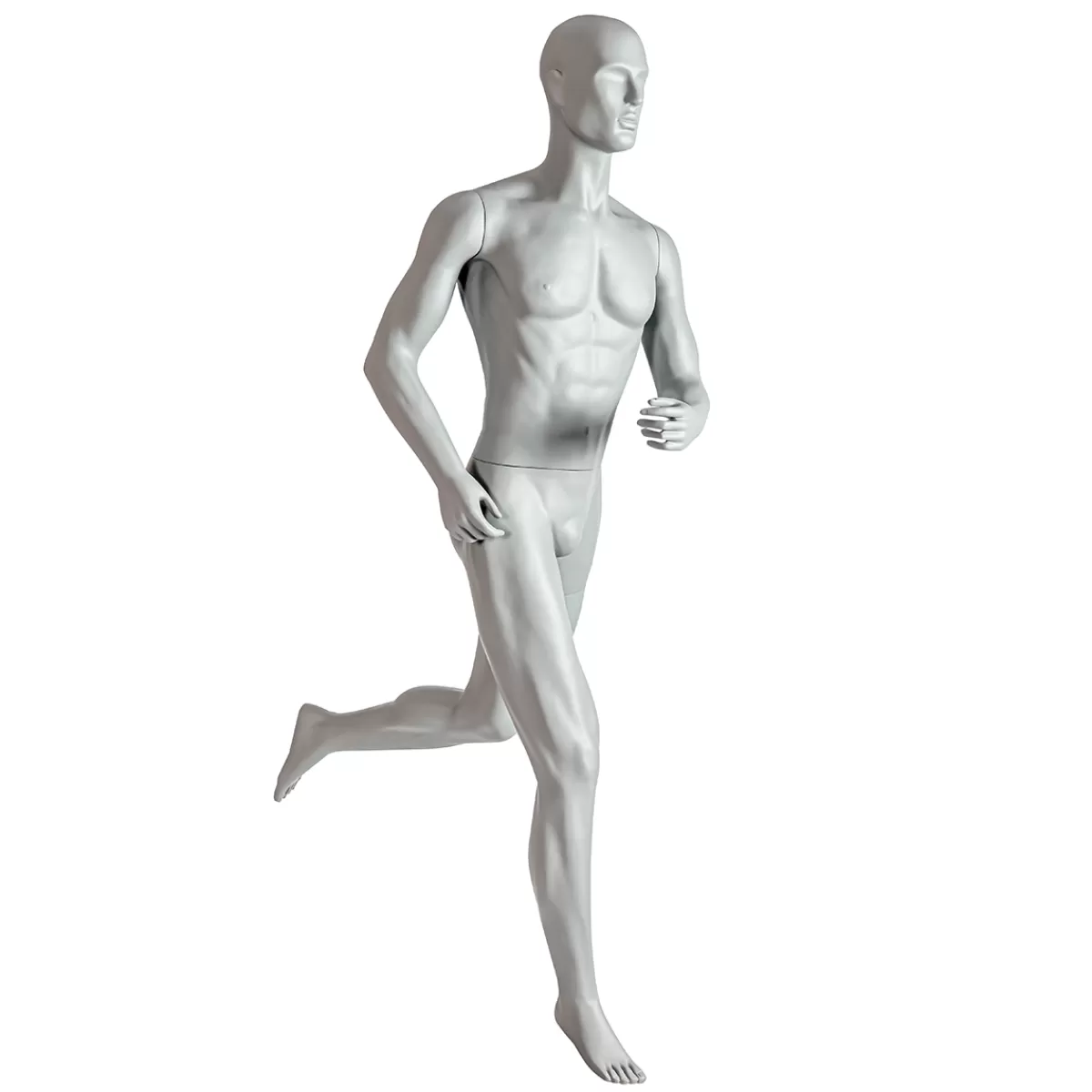 Rapide comme l’éclair ! Avec ce mannequin de sport masculin en pleine course, nous avons capturé le mouvement typique d’un coureur de façon réaliste. Un sport qui vit de la vitesse a besoin d’une présentation tout aussi dynamique pour enfoncer des portes ouvertes à vos clients. Avec ce mannequin mobile, nous y sommes parvenus ! Du visage à la plante des pieds, le mannequin masculin exprime la force et la détermination.