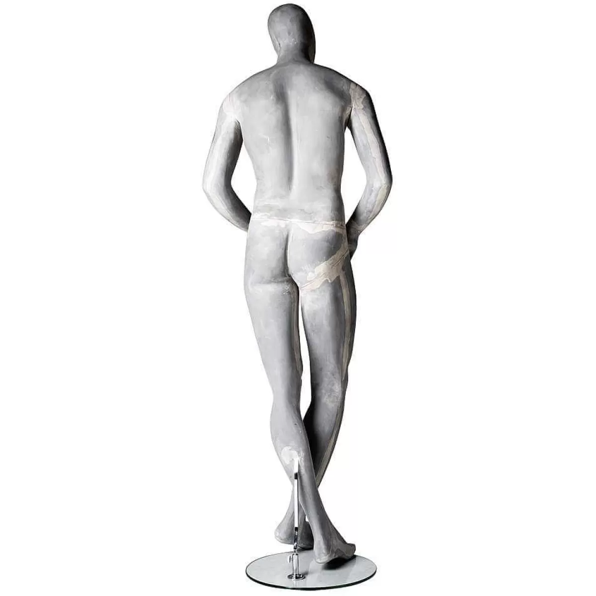 Extraordinaire à première vue – les nuances de gris typiques du béton avec finition mate confèrent à ce mannequin de vitrine un style moderne unique à l’aspect béton. En fibre de verre, avec tête d’œuf abstraite et orteils flip-flops. Ce mannequin est livré avec plaque de support en verre et tige pour mollet. Prix/pce.