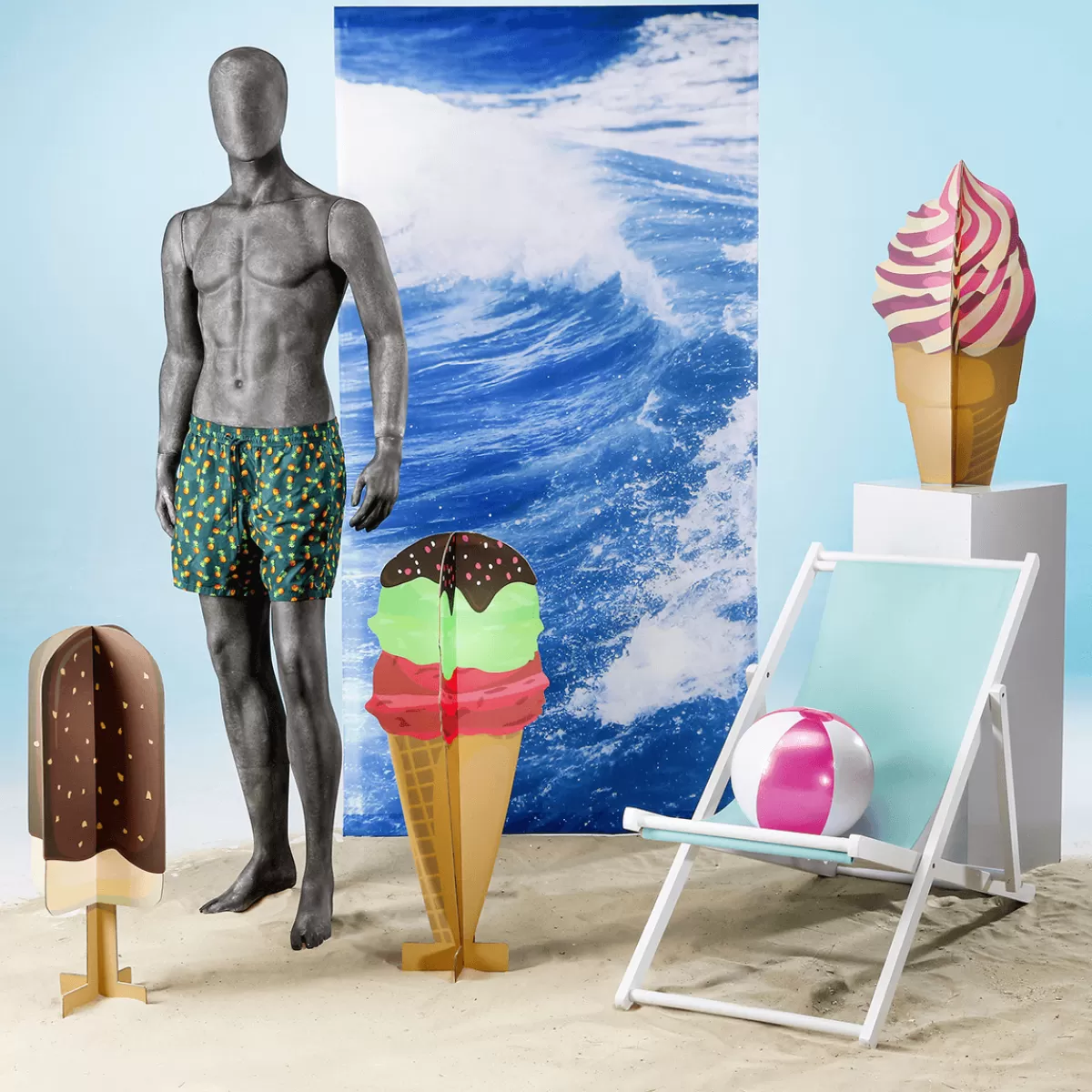 Quel homme ! Si vous voulez présenter la mode (sportive) de façon réaliste, vous devriez acheter des mannequins spéciaux pour cela. Un comme celui-ci : Notre mannequin homme est mobile et dispose d’un corps athlétique avec des muscles bien définis. La posture et le corps semblent dominants, confiants et puissants. Avec un tel torse et des six-packs, les maillots de bain se vendent d’eux-mêmes…