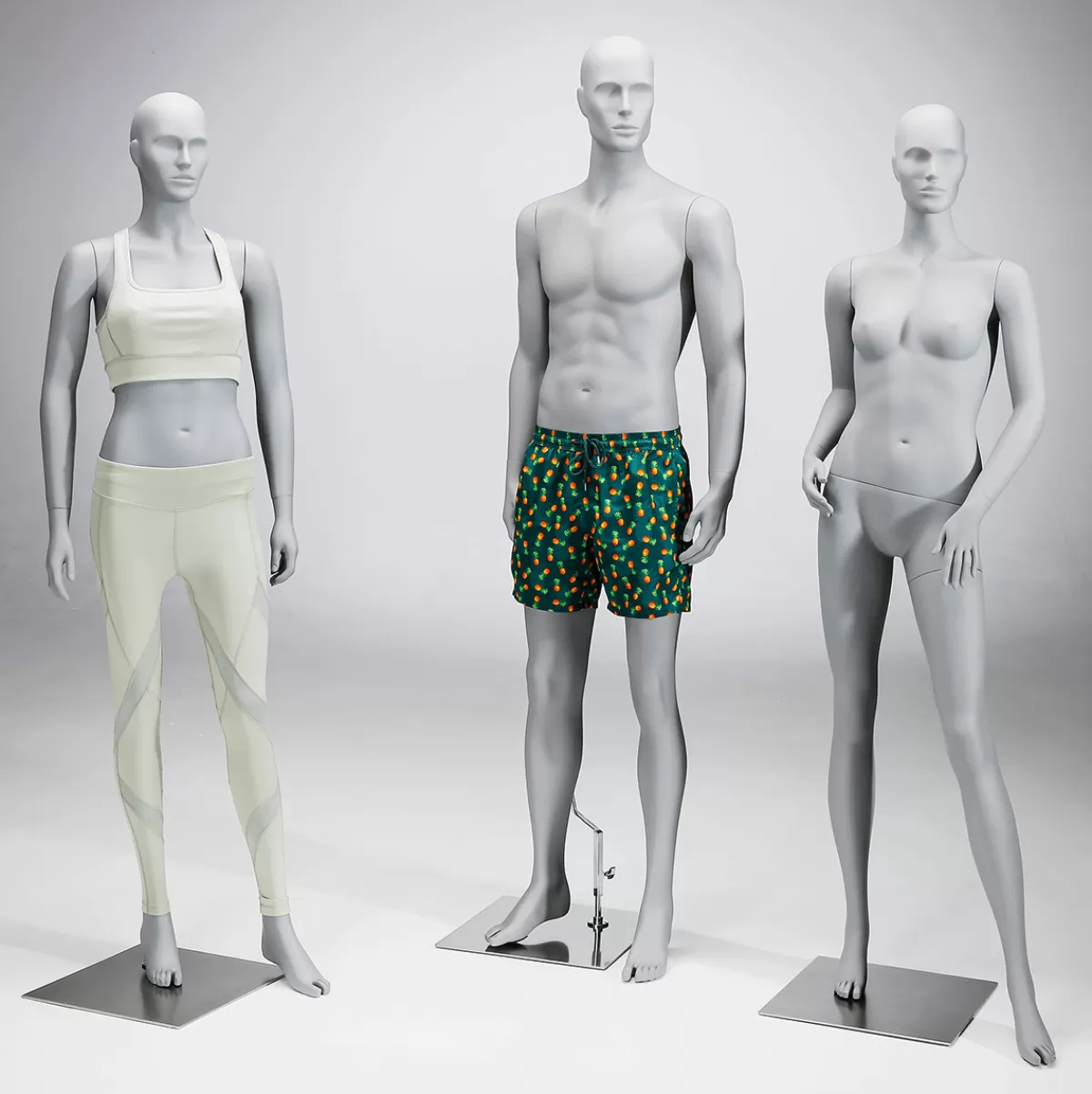 Le mannequin mobile pour la mode fitness a une finition de haute qualité. Notre homme sportif est fabriqué en polyester renforcé de fibres de verre ou en fibre de verre. Il est donc particulièrement durable. De plus, grâce à la peinture plus résistante aux rayures et à l’anti-salissure de la surface, vous aurez longtemps du plaisir à regarder ce mannequin athlétique. Les mannequins de DecoWoerner sont disponibles dans un gris clair avec une structure fine et élégante. Ils forment un cadre de fond discret pour mettre en valeur les vêtements de sport colorés ou unis.
