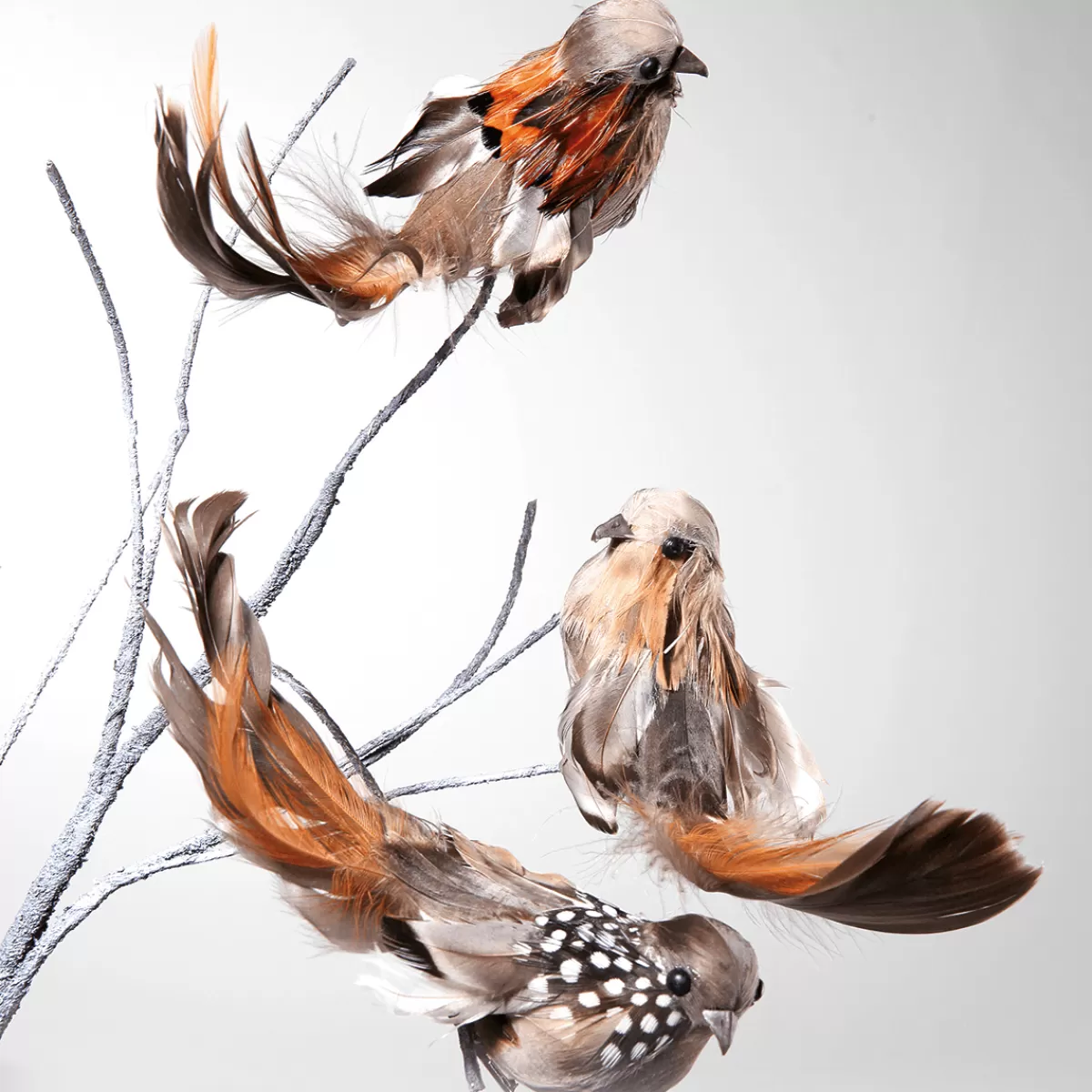 bel oiseau avec longues plumes de queue, corps en mousse dure avec clip pratique, prix/lot de 6