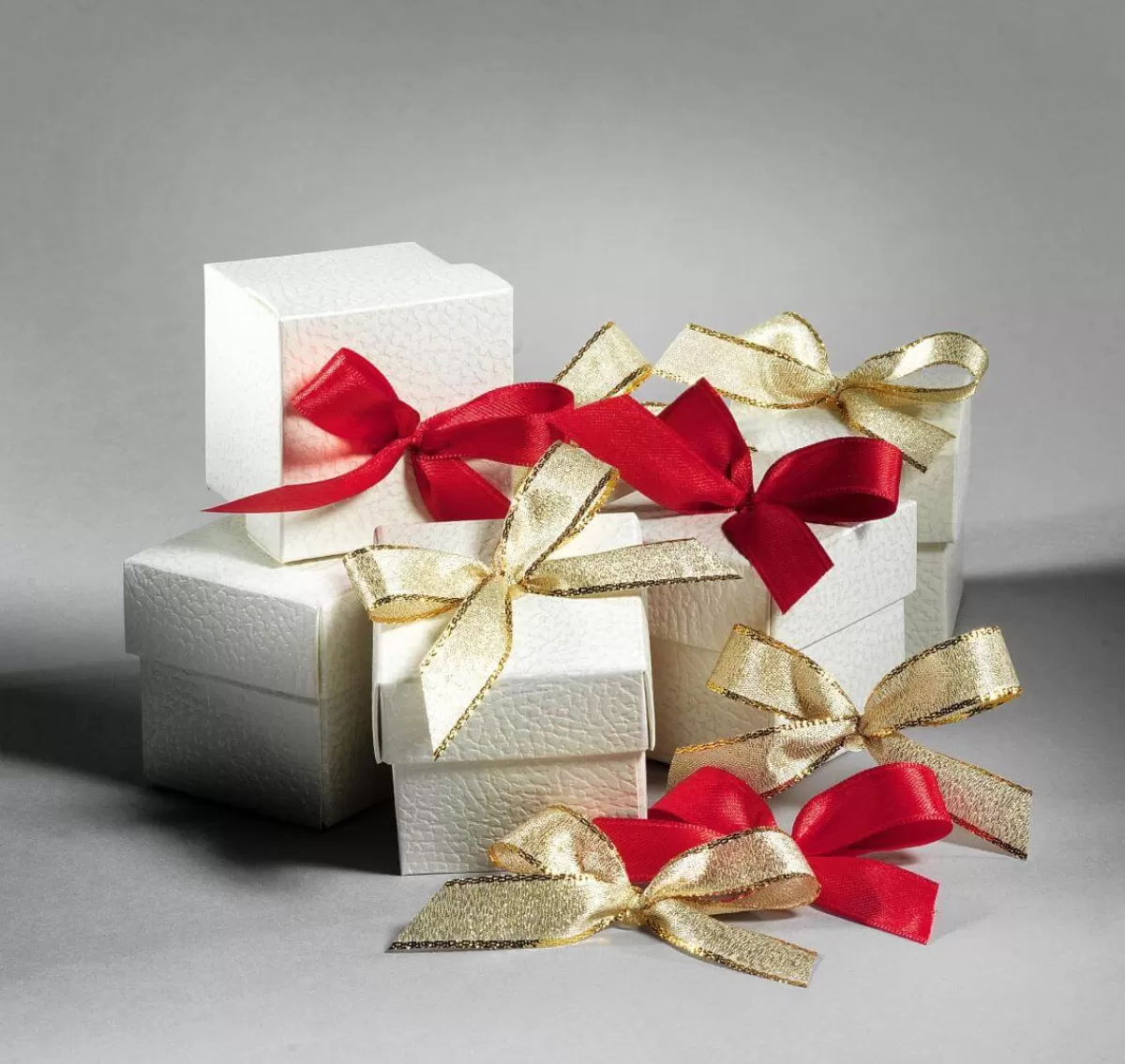 Noeud cadeau avec point de colle, idéal pour décorer des cadeaux. Ces noeuds peuvent également être incorporés dans vos décorations de Noël de diverses manières, telles que des couronnes, des guirlandes et des décorations de table. Prix/paquet de 100
