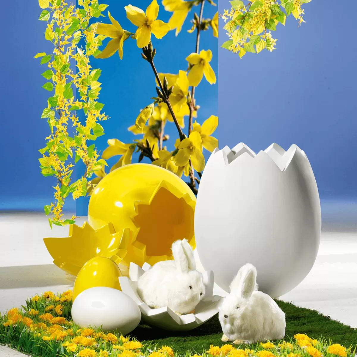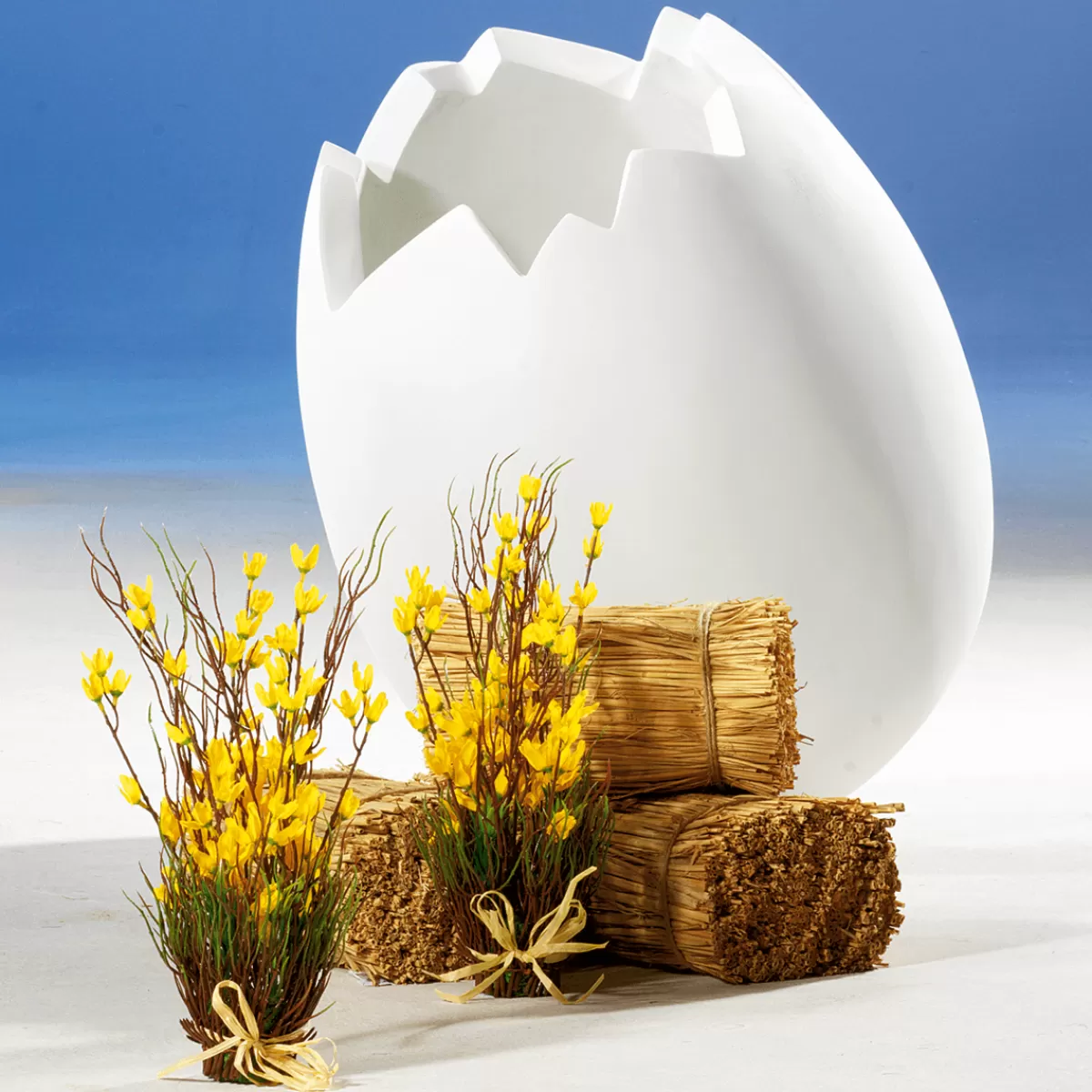 Ouvert ou fermé, l’oeuf géant avec son fragment de coquille séparé peut être rempli ou simplement utilisé en vedette dans votre déco pascale. La réalisation robuste en fibre de verre ép. 3 cm résistante aux chocs, peu inflammable, ainsi que le vernis haute qualité permettent une utilisation en extérieur. Prix/pce.