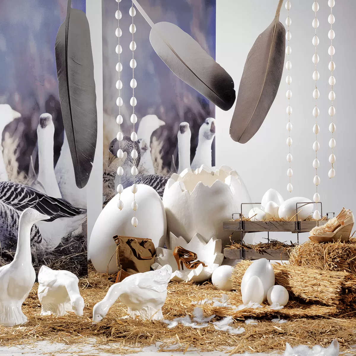 Avec cette œuf de Pâques XXL, vous pouvez complètement personnaliser votre décoration de Pâques. Grâce à l’anneau de support, l’œuf géant se tient d’aplomb et peut être rempli par exemple par des branches déco. Que ce soit pour un décor élégant ou traditionnel – avec cet œuf de Pâques, la décoration de la vitrine attire tous les regards. En mousse dure ép. 5 cm. Avec un couvercle amovible et un anneau de support Ø 40 cm. Prix de l’ensemble.