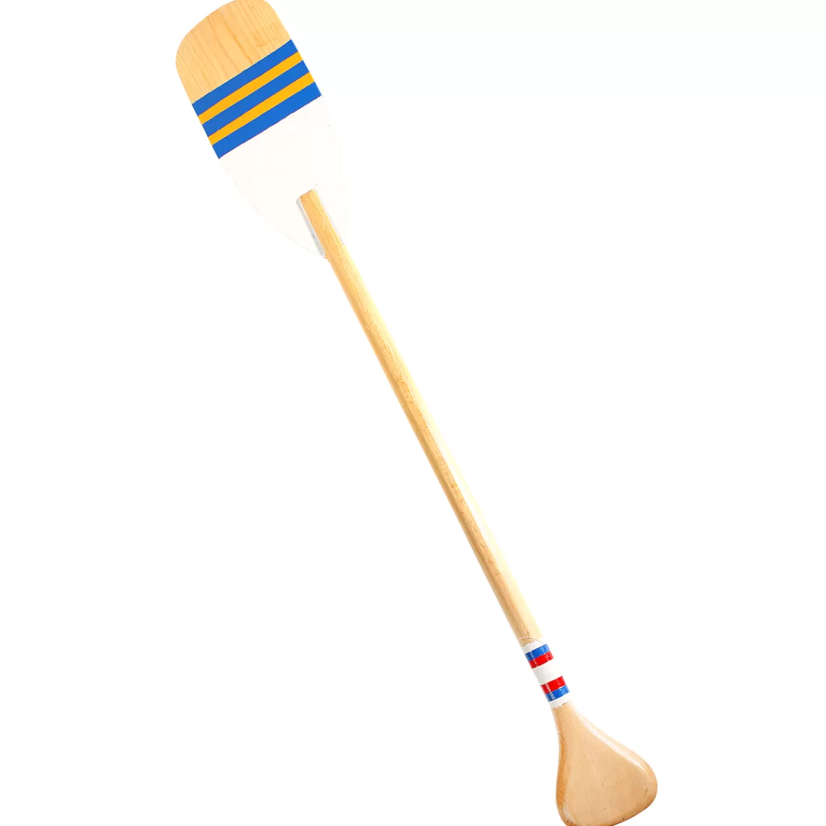 Authentiques, originales, peintes à la main – les pagaies en bois sont un excellent complément aux décorations de l’été maritime. En décoration murale ou simplement adossée au mur, la pagaie décorative donne à chaque pièce un cachet maritime. Article de décoration maritime en bois laqué avec des rayures de couleur contrastante. Notre conseil : il suffit d’enrouler une corde en sisal autour de l’extrémité du manche pour accrocher la pagaie.