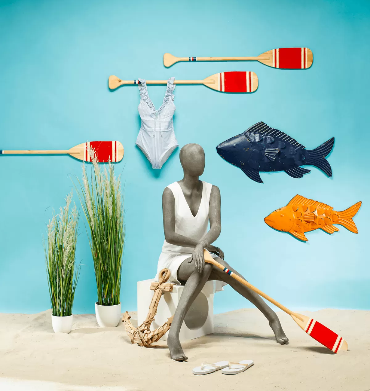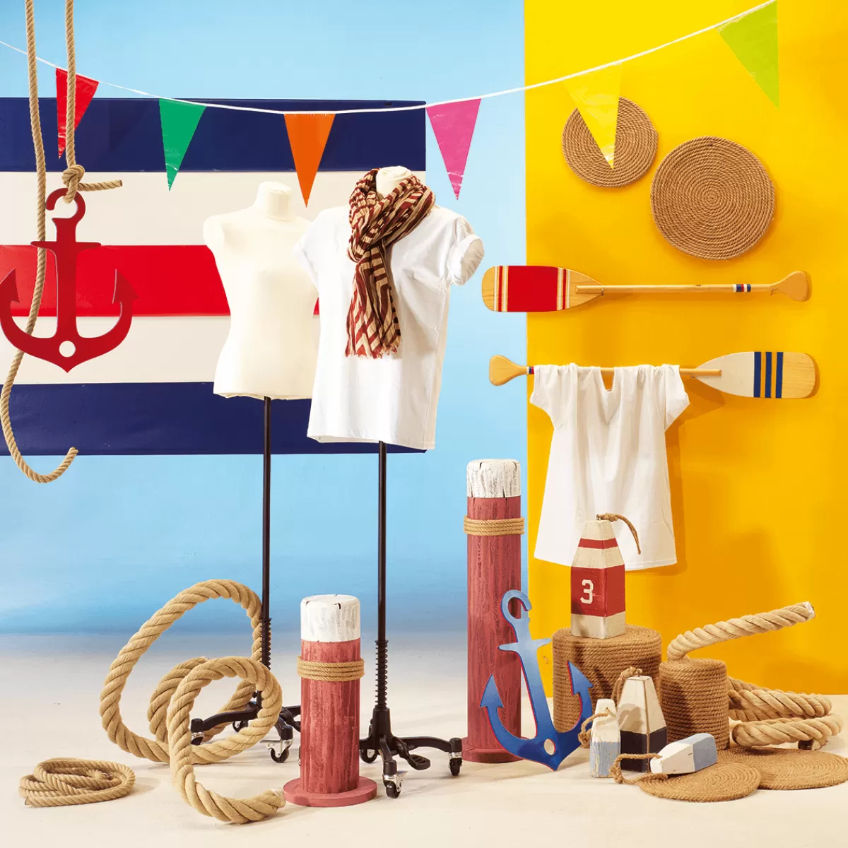 Authentiques, originales, peintes à la main – les pagaies en bois sont un excellent complément aux décorations de l’été maritime. En décoration murale ou simplement adossée au mur, la pagaie décorative donne à chaque pièce un cachet maritime. Article de décoration maritime en bois laqué avec des rayures de couleur contrastante. Notre conseil : il suffit d’enrouler une corde en sisal autour de l’extrémité du manche pour accrocher la pagaie.
