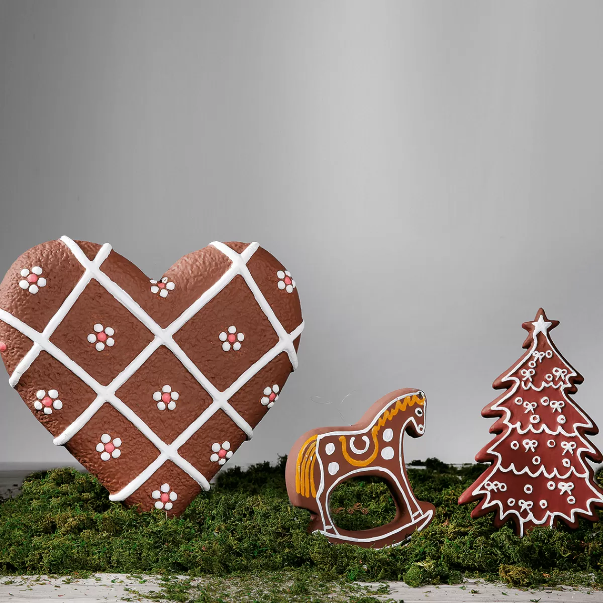 Les figurines en pain d’épice ont toujours fait partie de la décoration de Noël. Les motifs de Noël conçus de façon traditionnelle donnent envie de retomber en enfance.Nos pain d’épices factices à la décoration unique sont réutilisables chaque année et s’intègrent à merveille dans un décor de Noël ou dans des maisons de pain d’épice. Ce sapin déco est composé de mousse dure légère ép. 4 cm. Prix/pce.