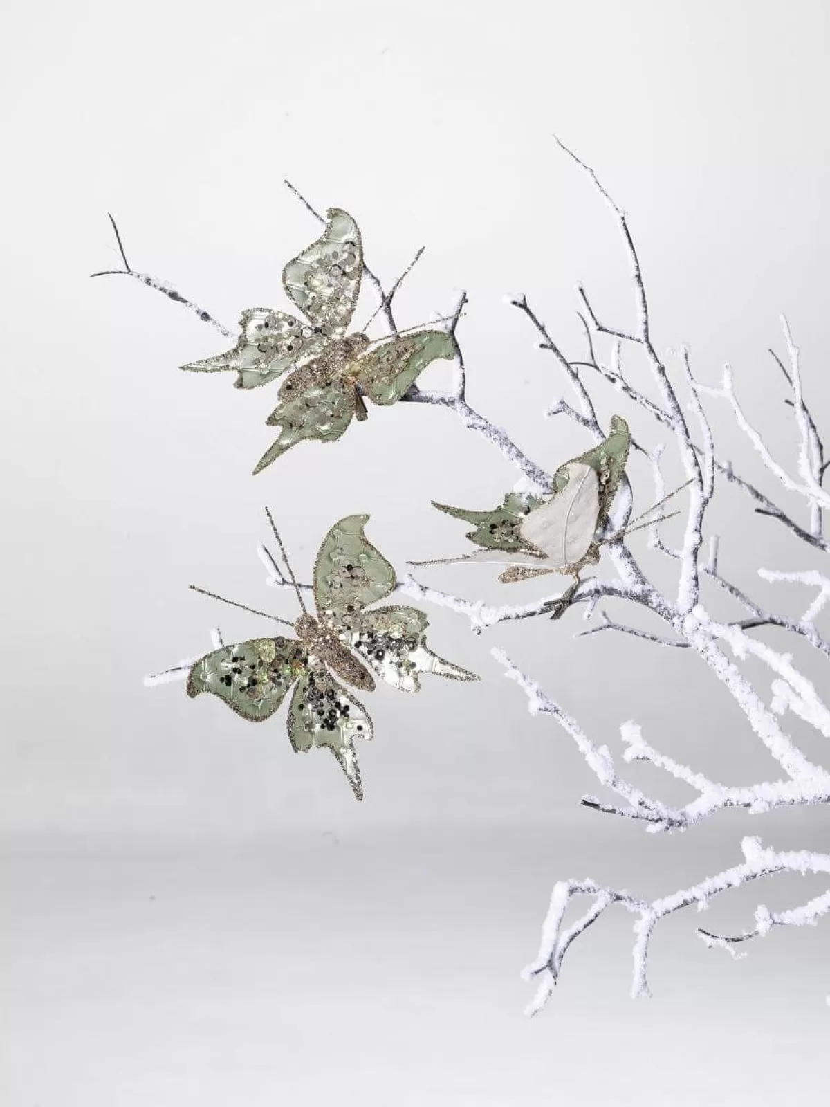 DecoWoerner Papillon Avec Clip, 13 Cm, 3 Pces, Sauge