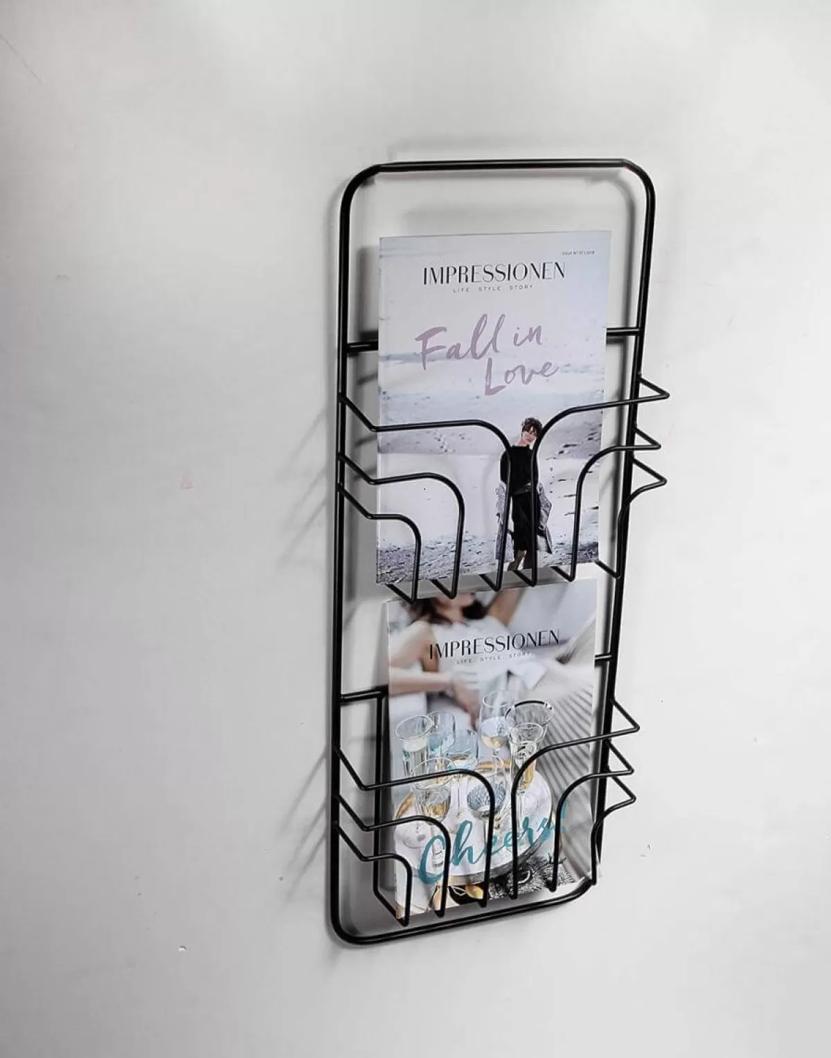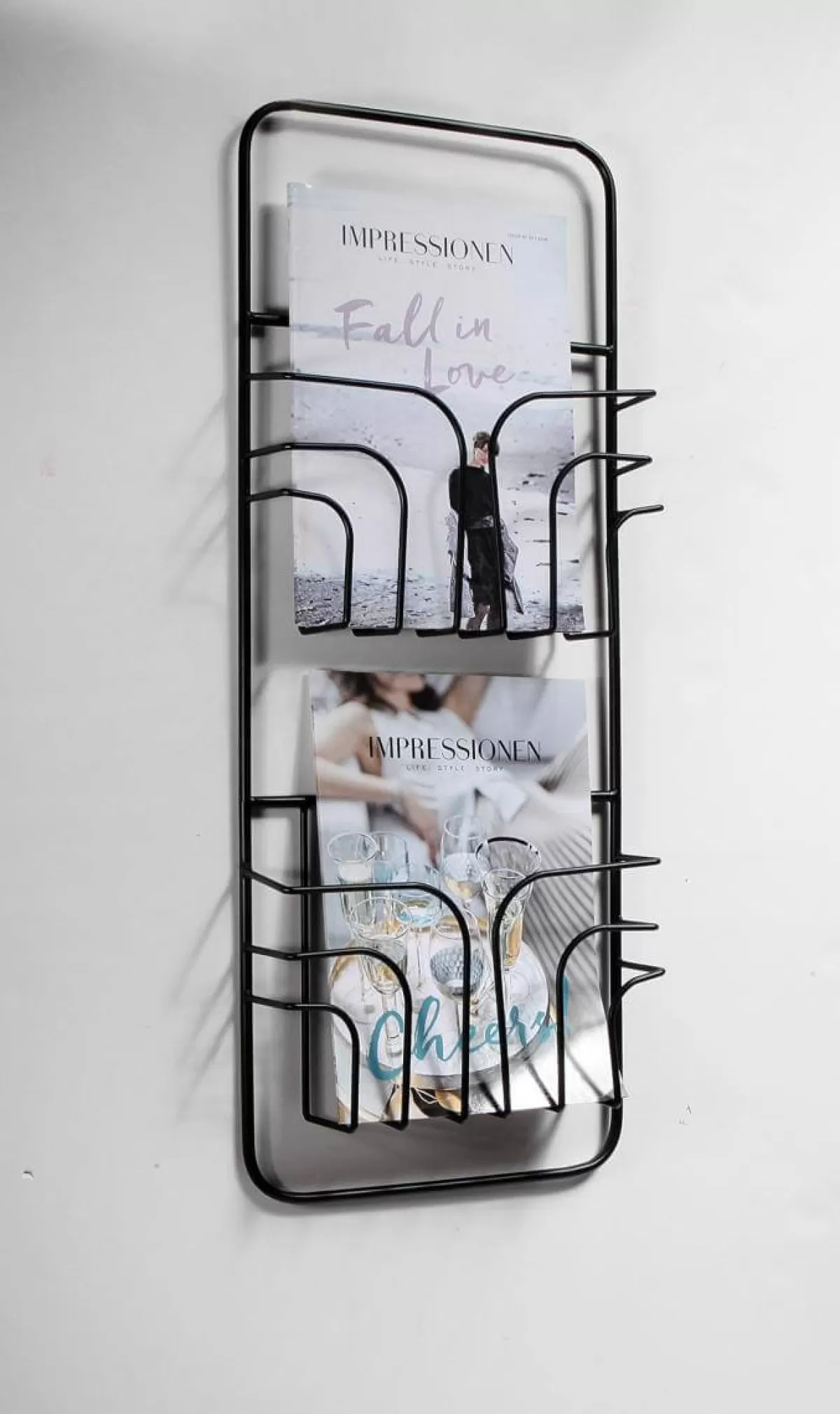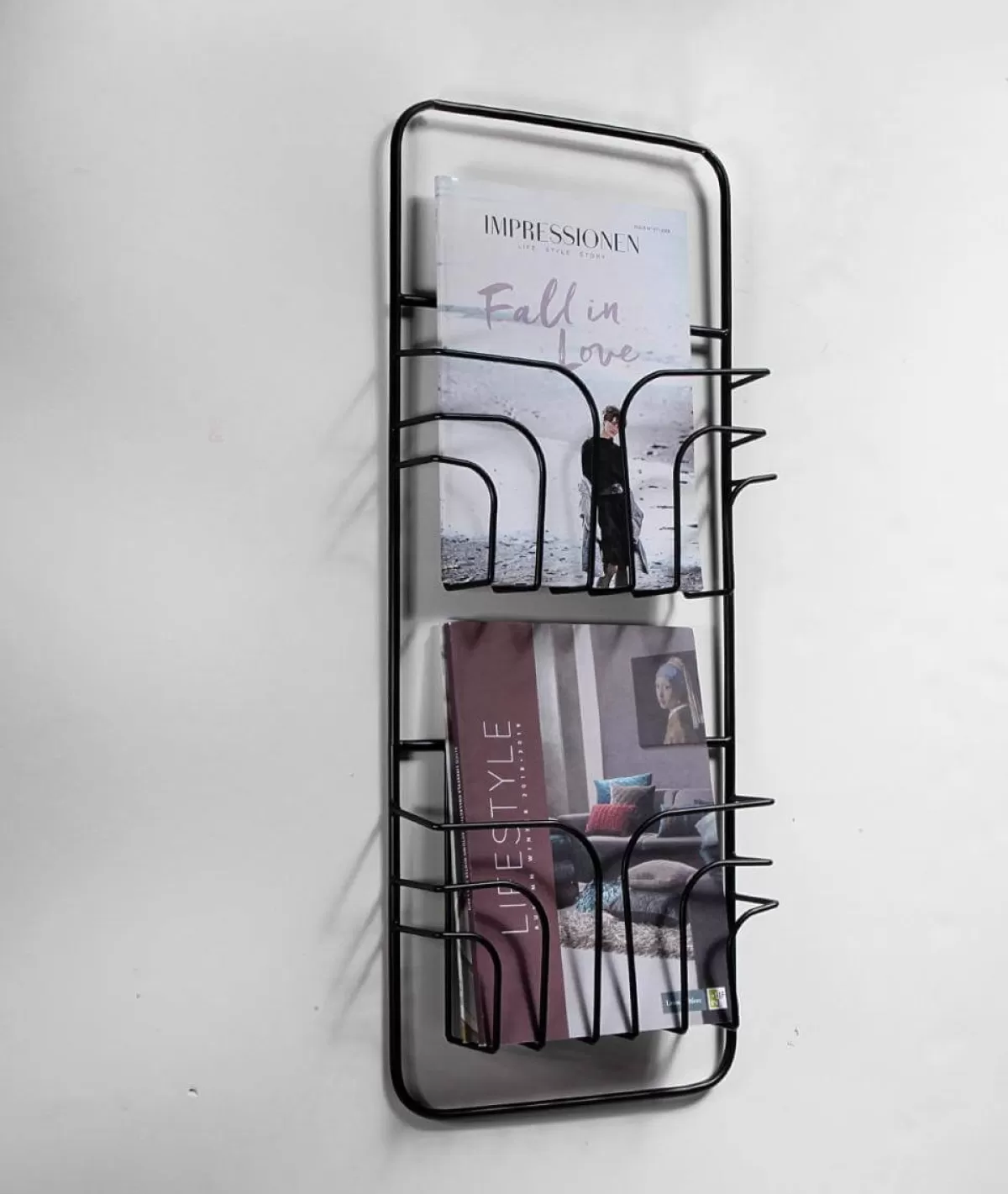 support mural simple avec 2 compartiments, en métal verni noir, avec œillets de suspension pour accrocher, prix/pce