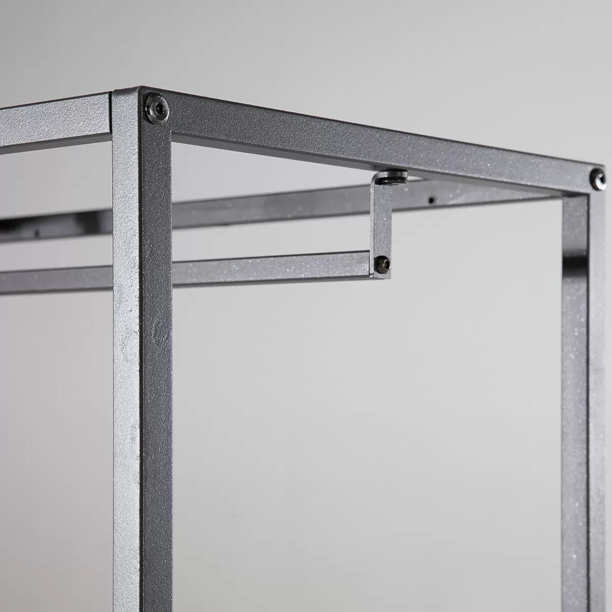 Ce portant textile fixe offre une solution pour le centre de la pièce qui allie un aspect professionnel et élégance pour votre présentation de produits actuelle. Le cadre au design rectiligne en tube carré comporte une barre carrée à extension centrale, qui sert de barre de prêt-à-porter directe. Cela offre non seulement de la transparence, mais également le grand avantage que vos clients peuvent accéder à vos produits sous tous les angles. La construction en métal à la fois légère et solide est recouverte d’un revêtement de poudre de haute qualité, ce qui rend le support de produits durable et robuste. Veuillez noter que le montage est à effectuer soi-même. Prix/pce.