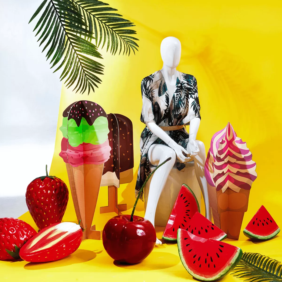 Ce présentoir de glace déco sert de présentoir ou de comptoir pour que votre décoration de glace estivale soit mise en valeur. Le décor de sol attire déjà une attention élevée en raison de sa taille, et est particulièrement flexible et de haute qualité. En plus de son bas prix, le décor MDF permet également, après utilisation, une évacuation avantageuse des déchets. Plaques MDF de 3 mm, imprimées et enfichables.Prix/pce.