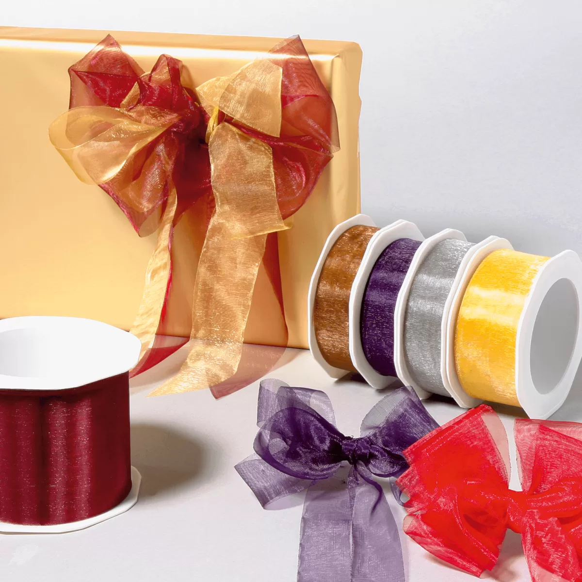 Le classique des rubans cadeaux :La bande de tissu 100% polyester est une variante à faible coût pour l’embellissement de cadeaux, dans l’artisanat ou l’art floral.prix/roul. de 25 m