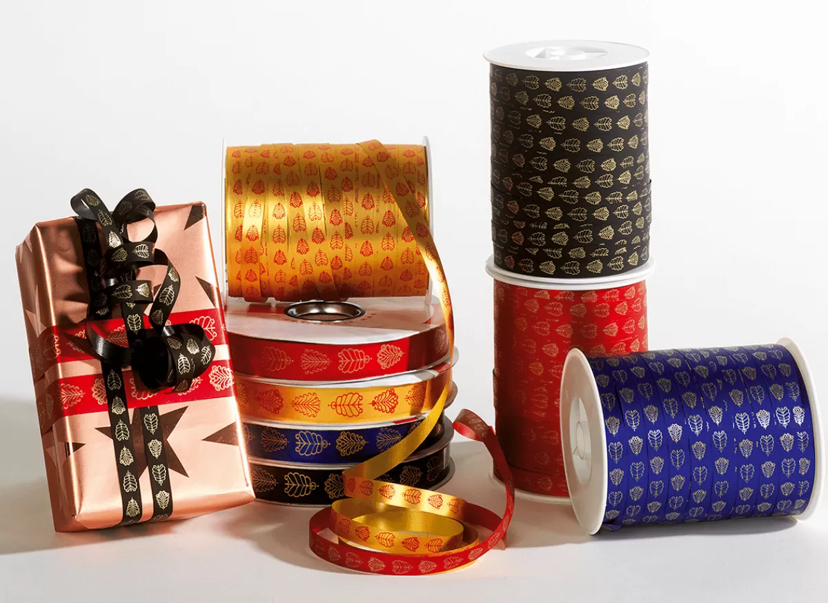 Décorez ces cadeaux avec ce charmant ruban imprimé ! Le ruban à friser est imprimé d’un côté, adapté pour effranger et boucler. Prix/rouleau de 250 m.