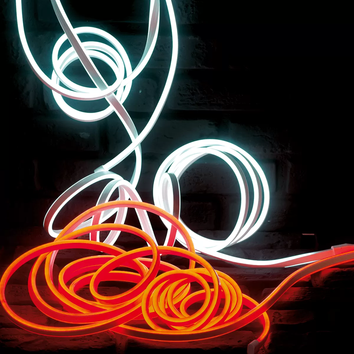 Ce tuyaux lumineux nouvellement développé avec effet néon est adapté pour la décoration d’escaliers, de rampes ou comme éclairage indirect pour un usage int. et ext. La bande plate latérale illuminée en silicone est souple et flexible et brille intensément et uniformément sans effet d’ombre et lumière. Le tuyau lumineux ne peut pas être raccourci. Fixation par serre-câbles ou pinces (non incluse). fiche extérieure classe de protection IP44, GS. Prix/pce.